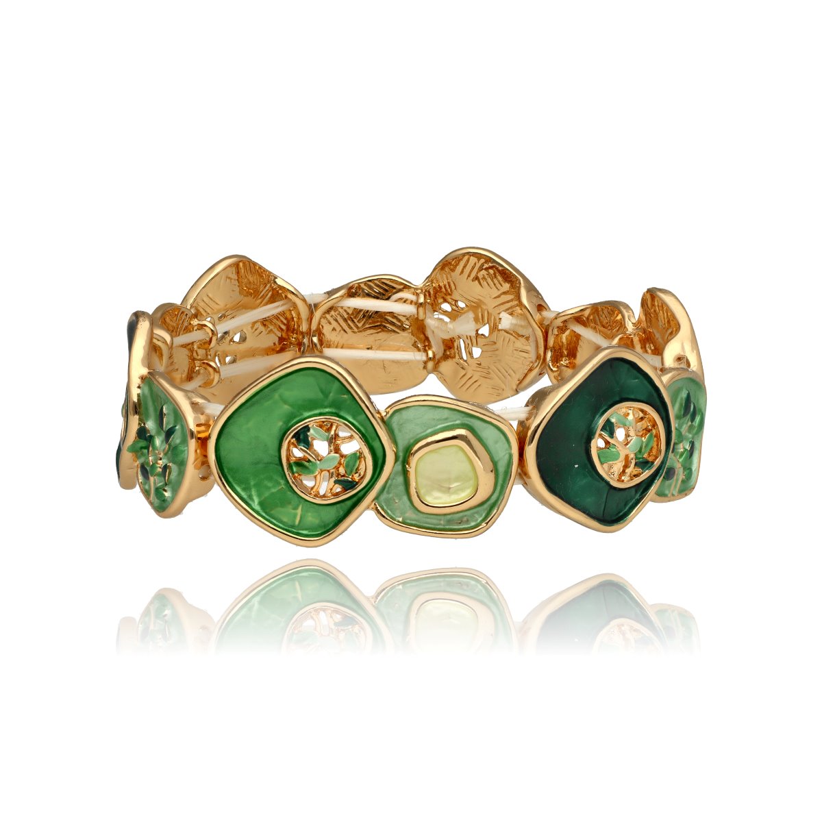 Bransoleta z kolekcji YVON BIŻUTERIA ARTYSTYCZNA, wykonana z metalu hipoalergicznego i zdobiona emaliowanymi elementami. Konstrukcja oparta na elastycznych gumeczkach dopasowuje się do każdego nadgarstka, zapewniając komfort noszenia. Wykończona z dbałością o detale, zachwyca artystycznym wzornictwem. Zapakowana w eleganckie pudełko prezentowe YVON – doskonały wybór zarówno do codziennych, jak i wieczorowych stylizacji.