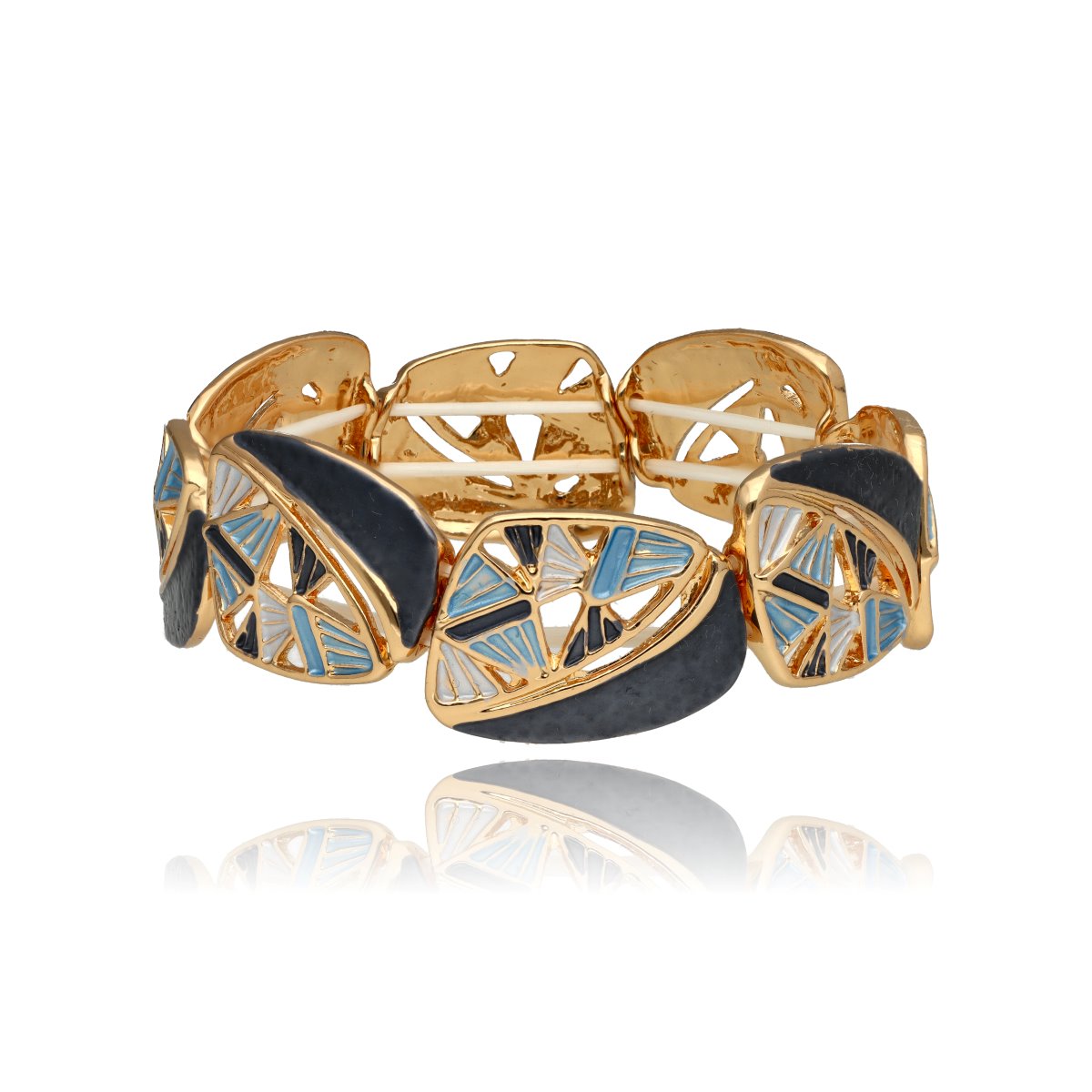 Bransoleta z kolekcji YVON BIŻUTERIA ARTYSTYCZNA, wykonana z metalu hipoalergicznego i zdobiona emaliowanymi elementami. Konstrukcja oparta na elastycznych gumeczkach dopasowuje się do każdego nadgarstka, zapewniając komfort noszenia. Wykończona z dbałością o detale, zachwyca artystycznym wzornictwem. Zapakowana w eleganckie pudełko prezentowe YVON – doskonały wybór zarówno do codziennych, jak i wieczorowych stylizacji.