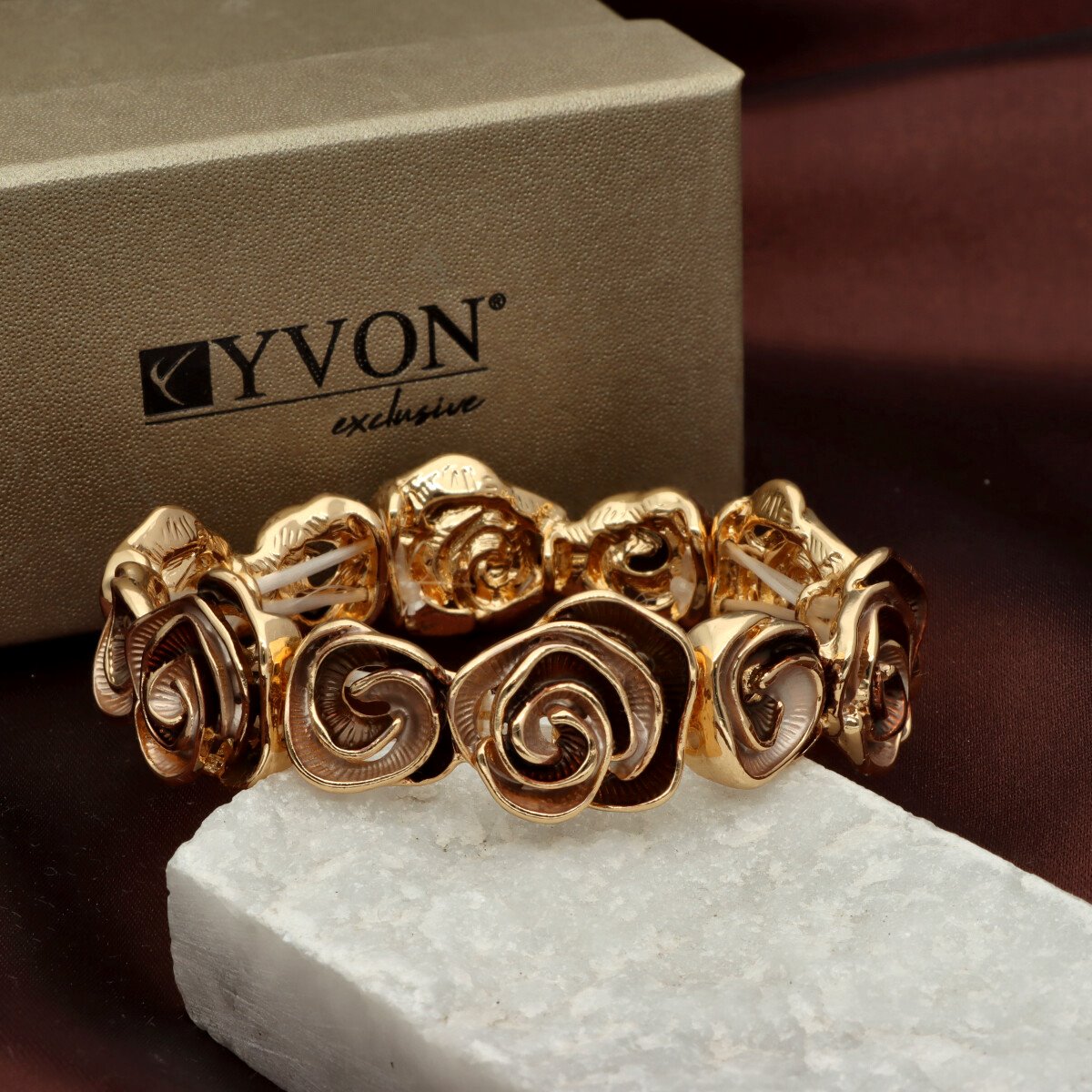 Bransoleta z kolekcji YVON BIŻUTERIA ARTYSTYCZNA, wykonana z metalu hipoalergicznego i zdobiona emaliowanymi elementami. Konstrukcja oparta na elastycznych gumeczkach dopasowuje się do każdego nadgarstka, zapewniając komfort noszenia. Wykończona z dbałością o detale, zachwyca artystycznym wzornictwem. Zapakowana w eleganckie pudełko prezentowe YVON – doskonały wybór zarówno do codziennych, jak i wieczorowych stylizacji.
