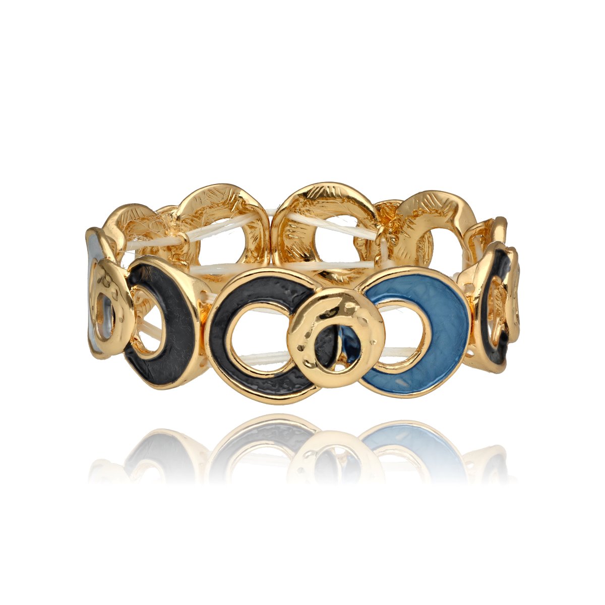 Bransoleta z kolekcji YVON BIŻUTERIA ARTYSTYCZNA, wykonana z metalu hipoalergicznego i zdobiona emaliowanymi elementami. Konstrukcja oparta na elastycznych gumeczkach dopasowuje się do każdego nadgarstka, zapewniając komfort noszenia. Wykończona z dbałością o detale, zachwyca artystycznym wzornictwem. Zapakowana w eleganckie pudełko prezentowe YVON – doskonały wybór zarówno do codziennych, jak i wieczorowych stylizacji.
