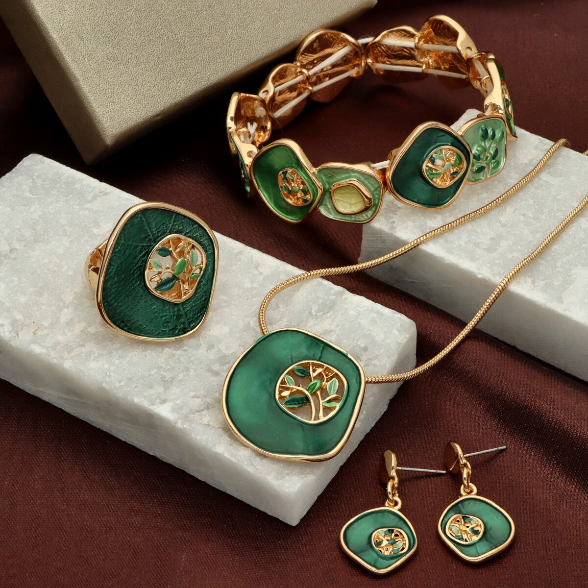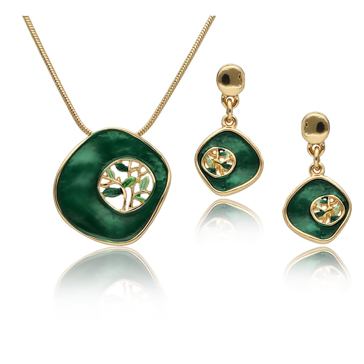 Komplet z kolekcji YVON BIŻUTERIA ARTYSTYCZNA, wykonany z metalu hipoalergicznego. Zdobiony emaliowanymi elementami, które tworzą elegancką, harmonijną kompozycję. Naszyjnik o długości 42 cm z możliwością regulacji o dodatkowe 8 cm, idealnie układa się na dekolcie. Kolczyki na wygodnym zapięciu typu sztyft. Całość zapakowana w eleganckie pudełko prezentowe YVON. To wyjątkowy komplet, który podkreśla kobiecą klasę i artystyczne wyczucie stylu.