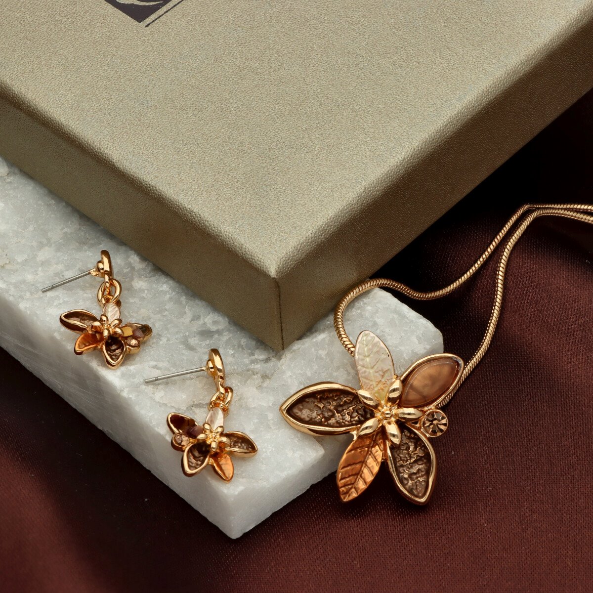 Komplet z kolekcji YVON BIŻUTERIA ARTYSTYCZNA, wykonany z metalu hipoalergicznego. Zdobiony emaliowanymi elementami, które tworzą elegancką, harmonijną kompozycję. Naszyjnik o długości 42 cm z możliwością regulacji o dodatkowe 8 cm, idealnie układa się na dekolcie. Kolczyki na wygodnym zapięciu typu sztyft. Całość zapakowana w eleganckie pudełko prezentowe YVON. To wyjątkowy komplet, który podkreśla kobiecą klasę i artystyczne wyczucie stylu.