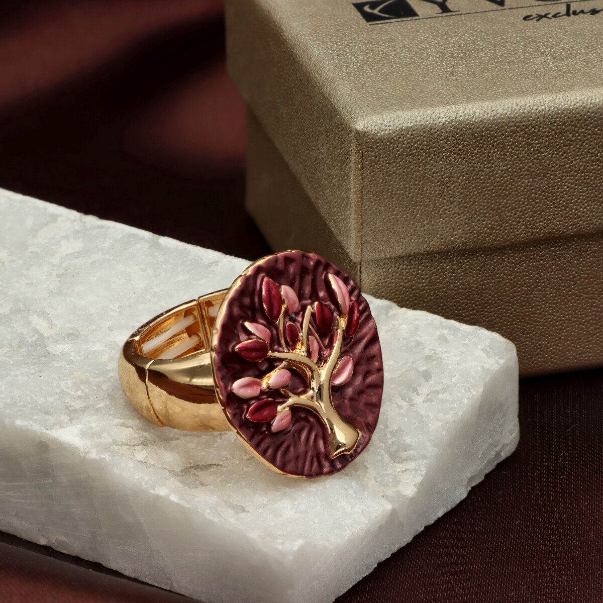 Pierścionek z kolekcji YVON BIŻUTERIA ARTYSTYCZNA, wykonany z metalu hipoalergicznego. Zdobiony emaliowanym motywem o artystycznym charakterze, dopracowany w każdym detalu. Dzięki elastycznej konstrukcji pierścionek doskonale dopasowuje się do palca i zapewnia wygodę noszenia. Całość zapakowana w eleganckie pudełko prezentowe YVON. Szukaj do kompletu naszyjnika, kolczyków i bransolety z tym samym indeksem numerycznym.