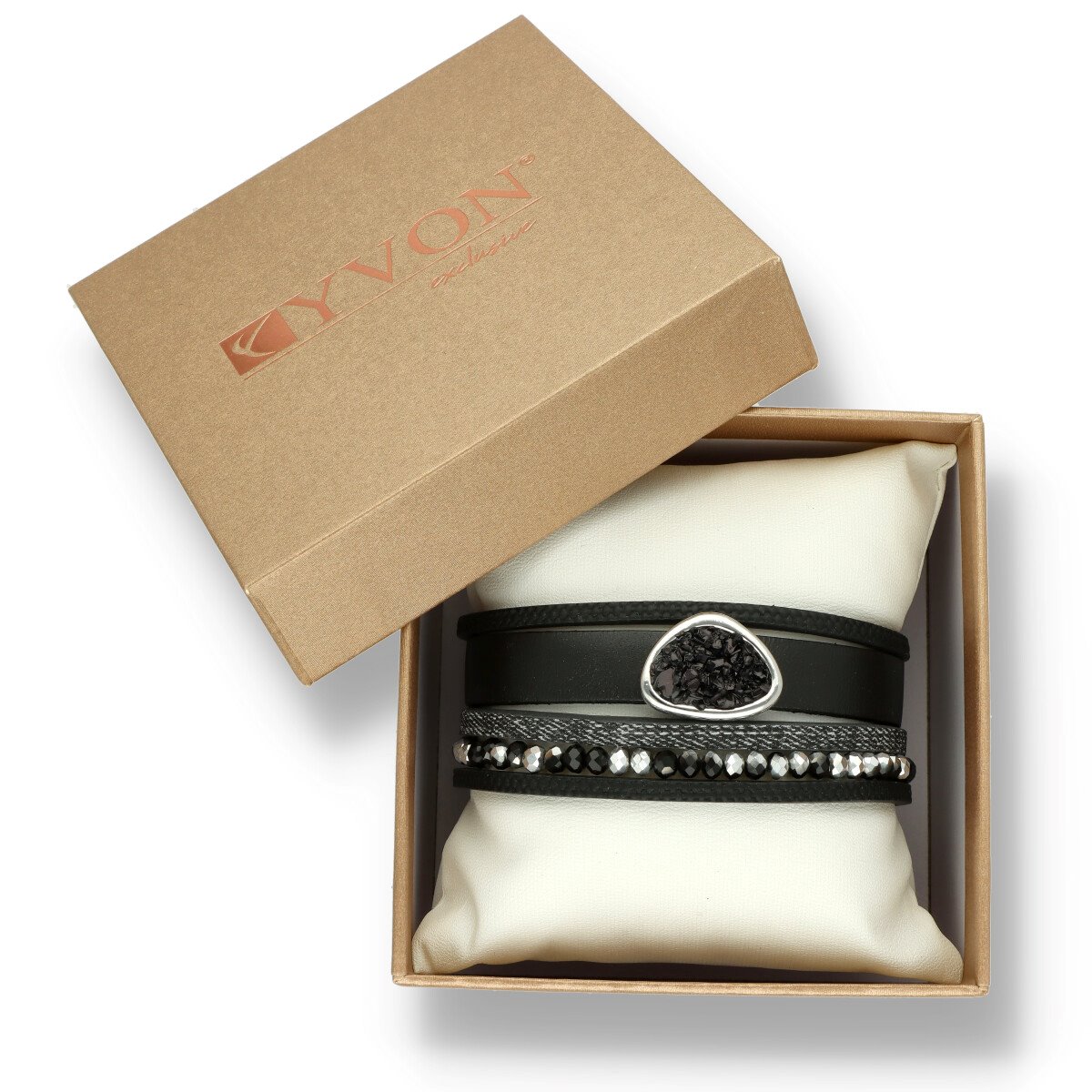 Elegancka bransoletka wykonana z wysokiej jakości skóry naturalnej i eko, zaprojektowana z myślą o nowoczesnych kobietach ceniących styl i wygodę. Wielowarstwowa struktura i metalowe akcenty nadają jej wyrazisty, ale ponadczasowy charakter. Zapięcie na mocny i wygodny magnes zapewnia szybkie zakładanie oraz stabilne trzymanie na nadgarstku. Elementy metalowe wykonane są z metalu hipoalergicznego (zamak i mosiądz), bezpiecznego dla skóry. Bransoletka zapakowana jest w eleganckie pudełeczko (gratis), dzięki czemu doskonale sprawdzi się również jako gotowy pomysł na prezent.