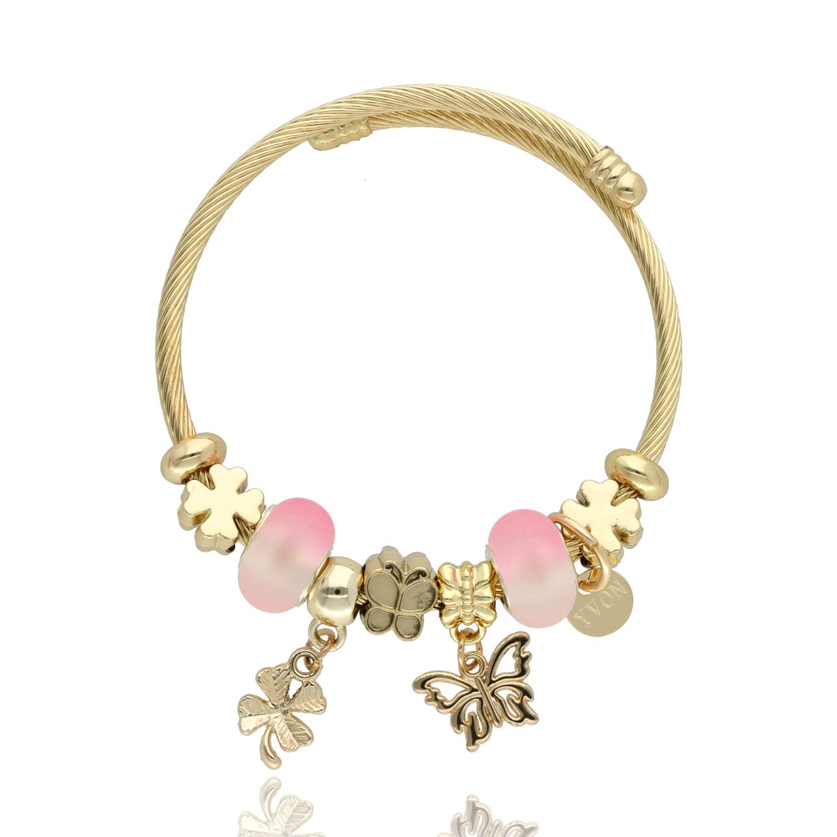 Urocza bransoletka wykonana ze stali szlachetnej (obręcz) oraz zamaku, szkła fasetowanego, ceramiki i emalii (czarmsy). W eleganckim PUDEŁECZKU GRATIS - idealny pomysł na prezent. Biżuteria hypoalergiczna.