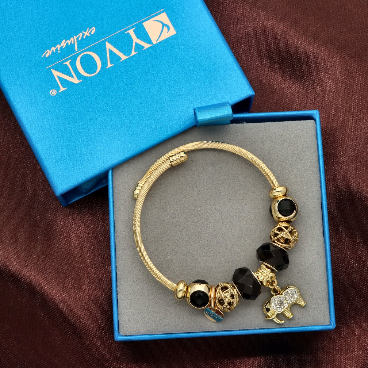 Urocza bransoletka wykonana ze stali szlachetnej (obręcz) oraz zamaku, szkła fasetowanego, ceramiki i emalii (czarmsy). W eleganckim PUDEŁECZKU GRATIS - idealny pomysł na prezent. Biżuteria hypoalergiczna.