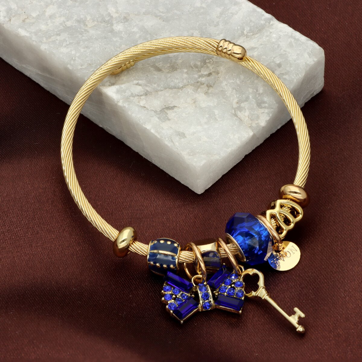 Urocza bransoletka wykonana ze stali szlachetnej (obręcz) oraz zamaku, szkła fasetowanego, ceramiki i emalii (czarmsy). W eleganckim PUDEŁECZKU GRATIS - idealny pomysł na prezent. Biżuteria hypoalergiczna.