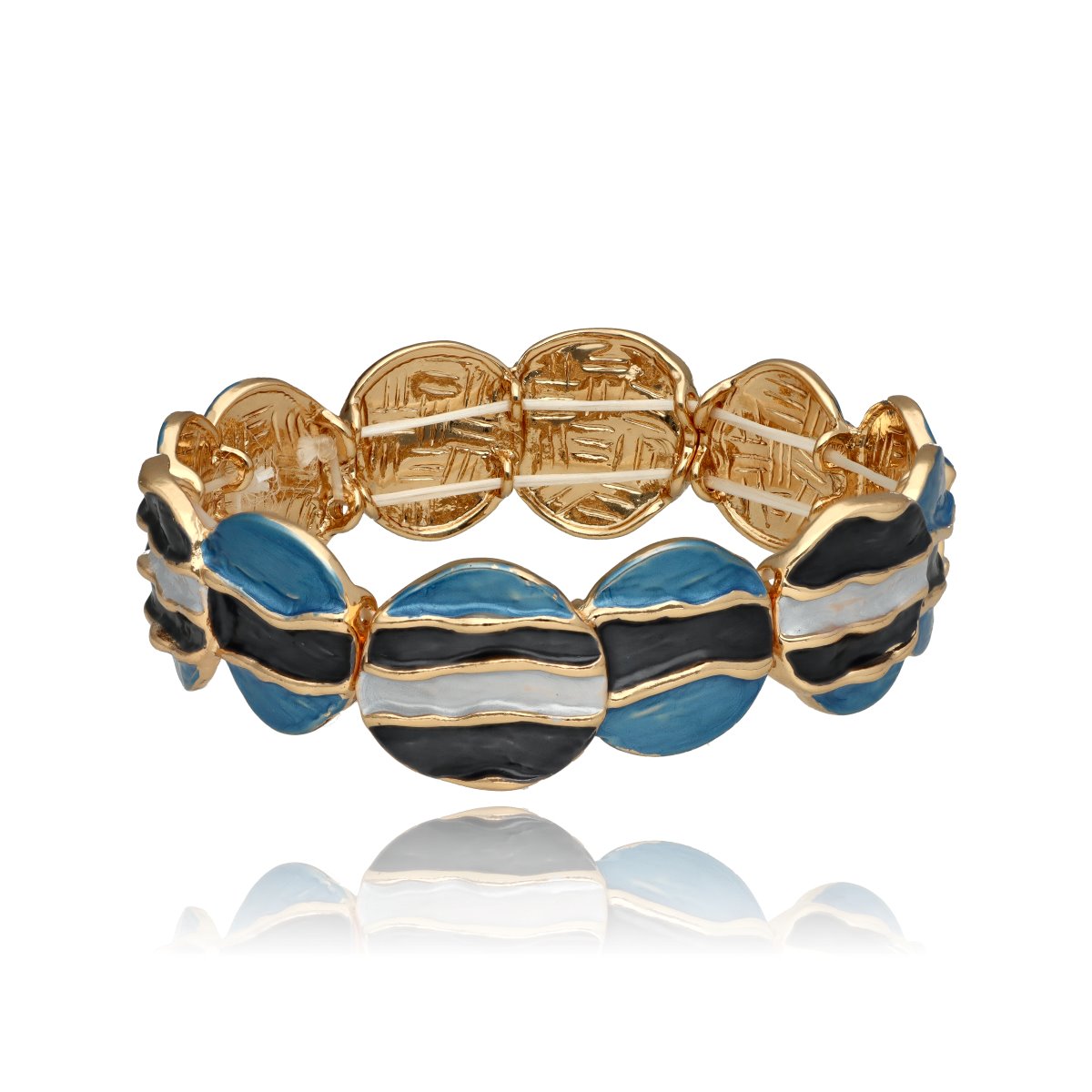 Bransoleta z kolekcji YVON BIŻUTERIA ARTYSTYCZNA, wykonana z metalu hipoalergicznego i zdobiona emaliowanymi elementami. Konstrukcja oparta na elastycznych gumeczkach dopasowuje się do każdego nadgarstka, zapewniając komfort noszenia. Wykończona z dbałością o detale, zachwyca artystycznym wzornictwem. Zapakowana w eleganckie pudełko prezentowe YVON – doskonały wybór zarówno do codziennych, jak i wieczorowych stylizacji.