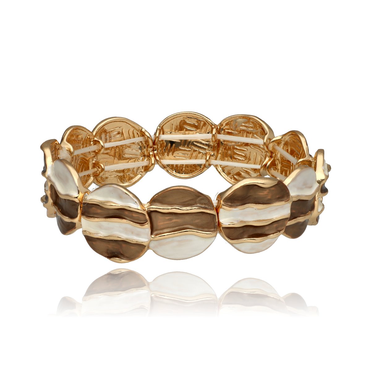 Bransoleta z kolekcji YVON BIŻUTERIA ARTYSTYCZNA, wykonana z metalu hipoalergicznego i zdobiona emaliowanymi elementami. Konstrukcja oparta na elastycznych gumeczkach dopasowuje się do każdego nadgarstka, zapewniając komfort noszenia. Wykończona z dbałością o detale, zachwyca artystycznym wzornictwem. Zapakowana w eleganckie pudełko prezentowe YVON – doskonały wybór zarówno do codziennych, jak i wieczorowych stylizacji.