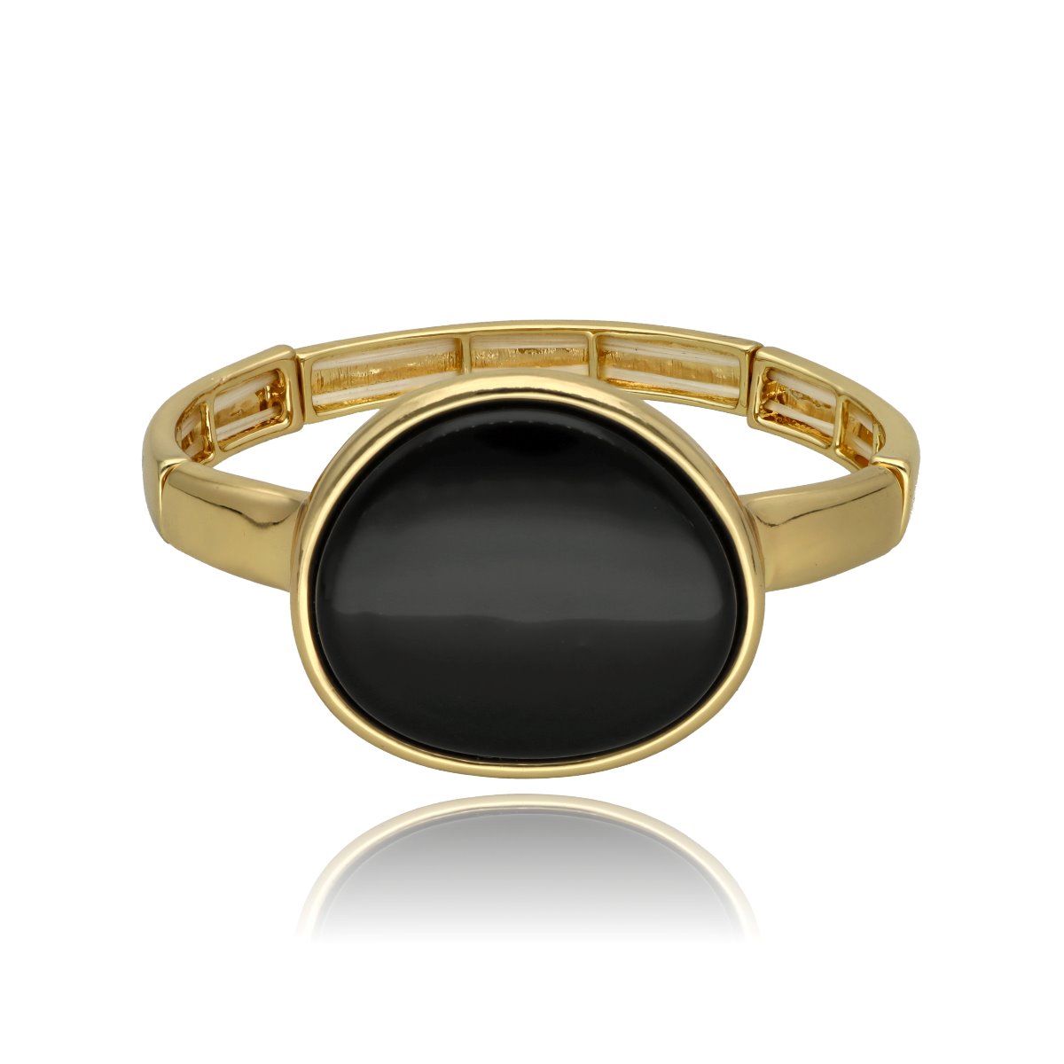 Uniwersalna, rozciągliwa bransoletka wykonana z metalu (zamak) i elementu z kolorowej żywicy. Osadzona na elastycznej gumce, dopasowuje się do większości nadgarstków, zapewniając komfort i wygodę noszenia.
