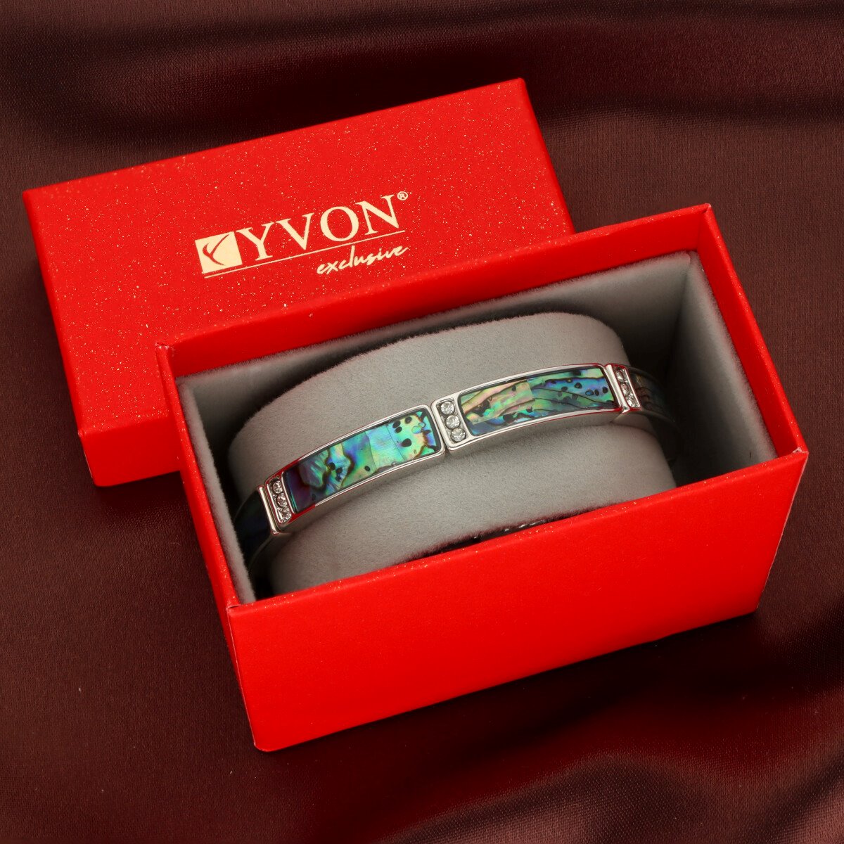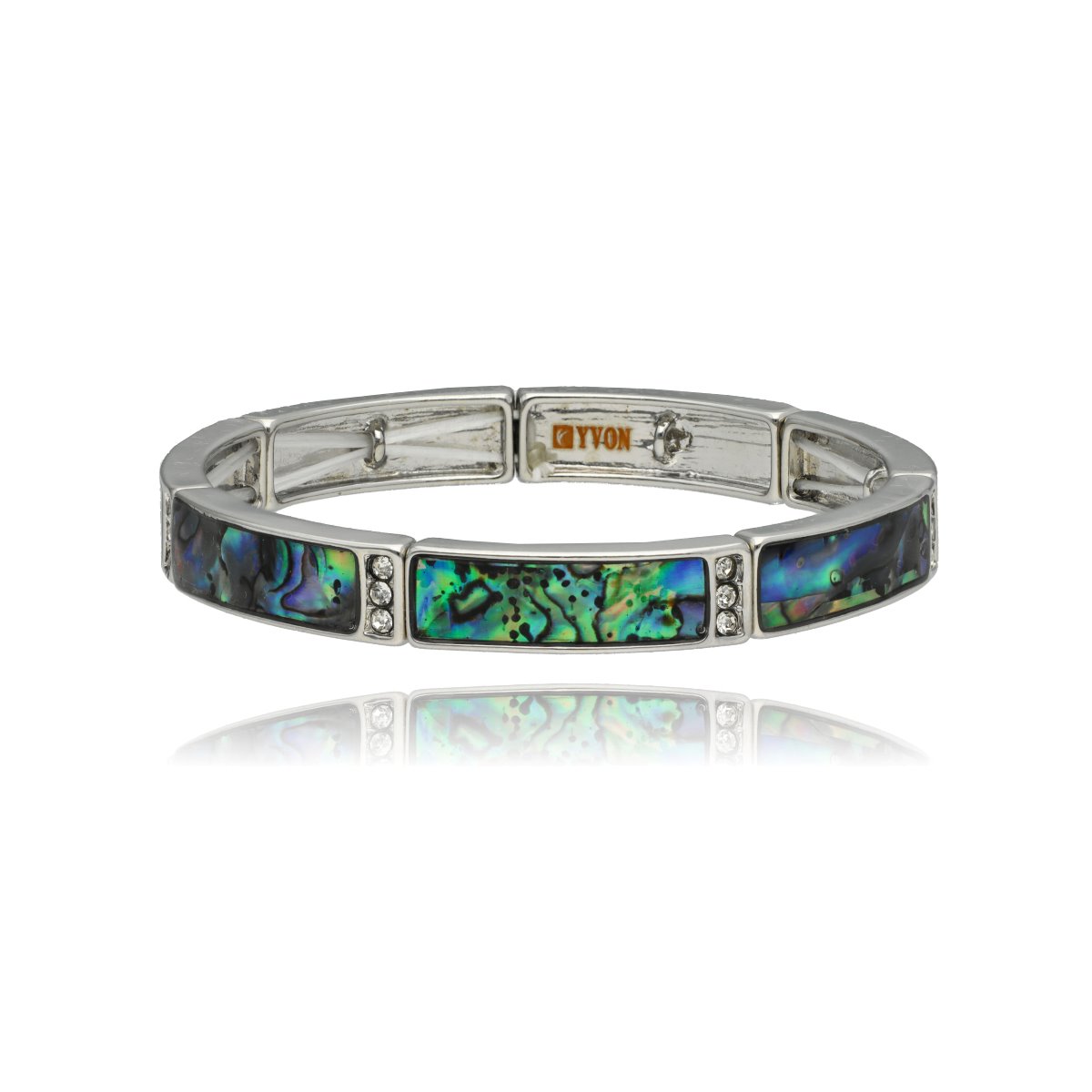 Stylowa bransoletka na elastycznej gumce, wykonana z metalowych, antyalergicznych elementów i muszli naturalnej Abalone.