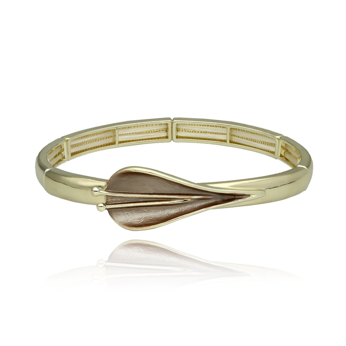Opis produktu: Bransoletka z ozdobnym motywem liścia, wykonana na rozciągliwych gumkach, co zapewnia wygodę i łatwe dopasowanie do nadgarstka. Wykonana z hipoalergicznego metalu (zamak – stop cynku, bezpieczny dla wrażliwej skóry) oraz kolorowej emalii. Doskonale sprawdzi się jako uzupełnienie codziennych i eleganckich stylizacji. Do produktu przewidzieliśmy pasujący naszyjnik i kolczyki o tym samym indeksie numerycznym.