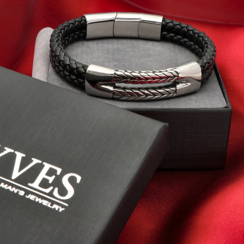 Męska bransoleta wykonana z naturalnej skóry oraz stali szlachetnej 316L, odpornej na uszkodzenia i hipoalergicznej. Prosty, nowoczesny design sprawia, że pasuje zarówno na co dzień, jak i do bardziej eleganckich stylizacji.