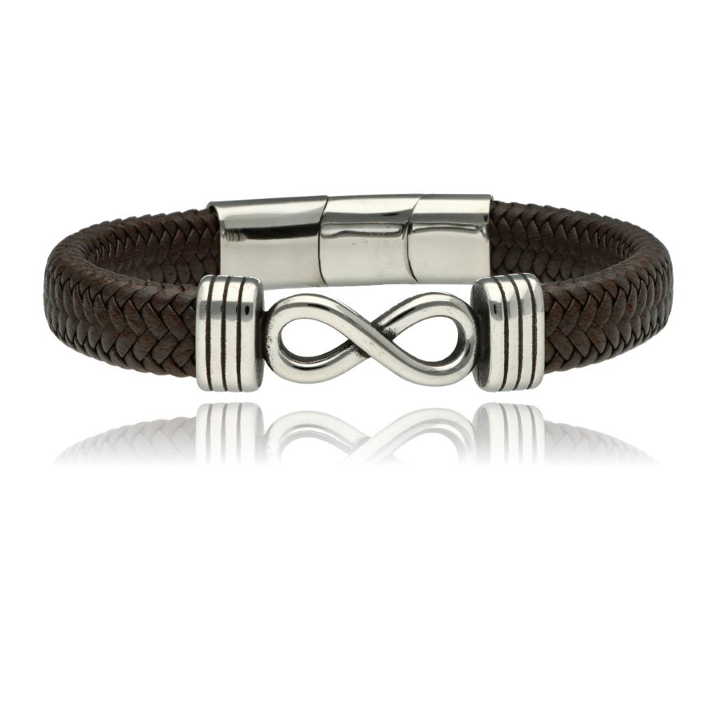 Męska bransoleta wykonana z naturalnej skóry oraz stali szlachetnej 316L, odpornej na uszkodzenia i hipoalergicznej. Prosty, nowoczesny design sprawia, że pasuje zarówno na co dzień, jak i do bardziej eleganckich stylizacji.