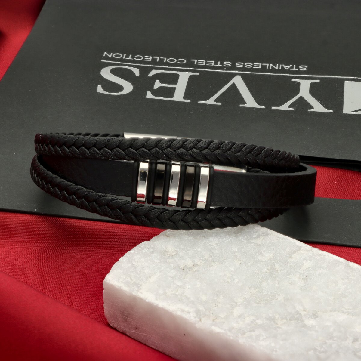 Męska bransoleta wykonana z naturalnej skóry oraz stali szlachetnej 316L, odpornej na uszkodzenia i hipoalergicznej. Prosty, nowoczesny design sprawia, że pasuje zarówno na co dzień, jak i do bardziej eleganckich stylizacji.