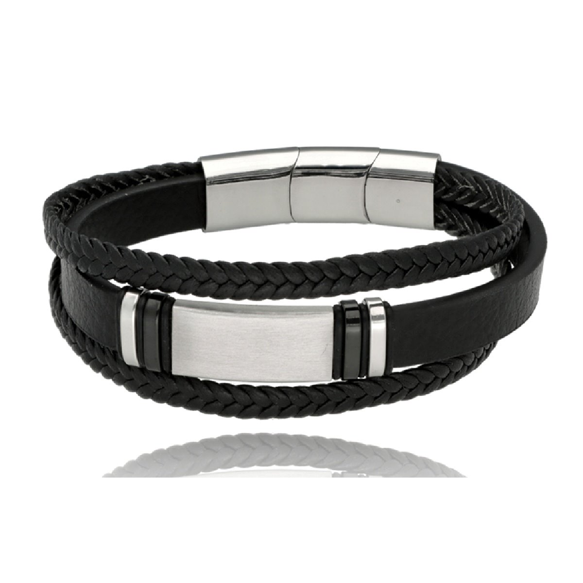 Męska bransoleta wykonana z naturalnej skóry oraz stali szlachetnej 316L, odpornej na uszkodzenia i hipoalergicznej. Prosty, nowoczesny design sprawia, że pasuje zarówno na co dzień, jak i do bardziej eleganckich stylizacji.