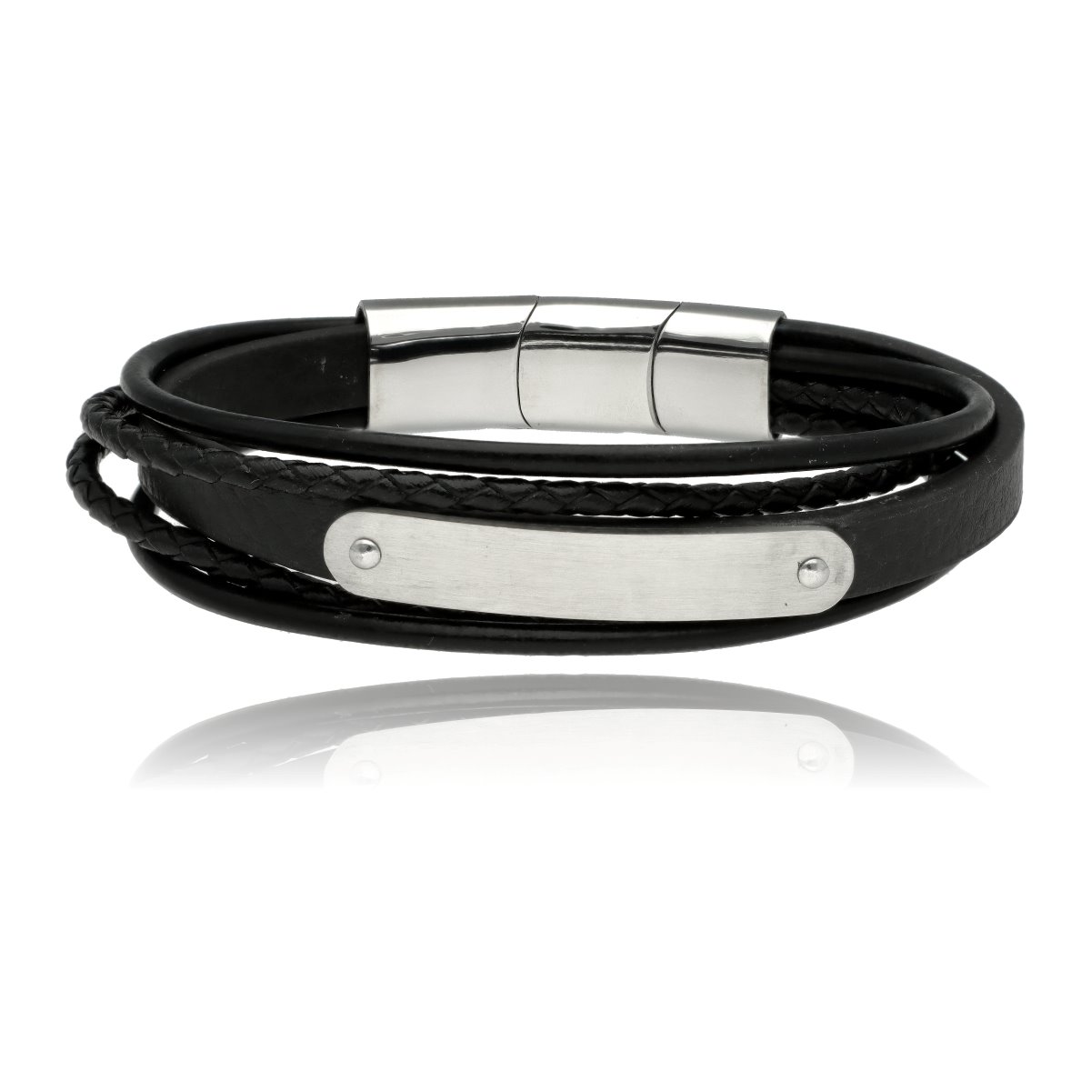 Męska bransoleta wykonana z naturalnej skóry oraz stali szlachetnej 316L, odpornej na uszkodzenia i hipoalergicznej. Prosty, nowoczesny design sprawia, że pasuje zarówno na co dzień, jak i do bardziej eleganckich stylizacji.