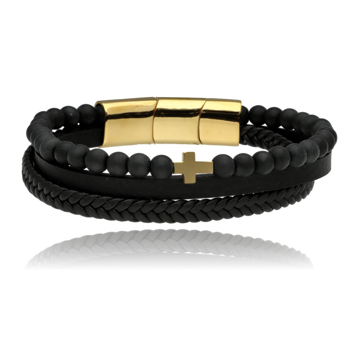 Męska bransoleta wykonana z naturalnej skóry, kamieni LAWA oraz stali szlachetnej 316L, odpornej na uszkodzenia i hipoalergicznej. Prosty, nowoczesny design sprawia, że pasuje zarówno na co dzień, jak i do bardziej eleganckich stylizacji.