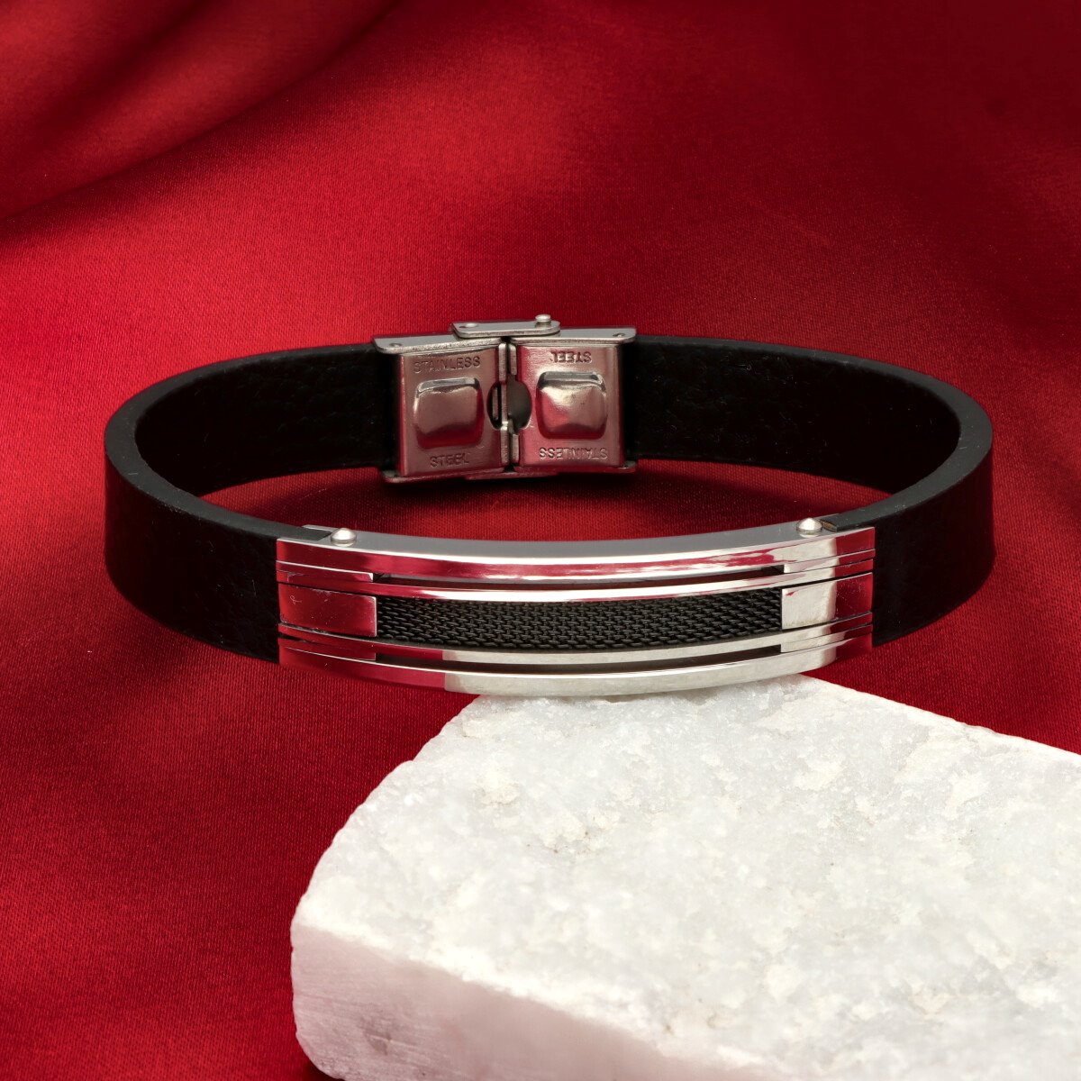 Męska bransoleta wykonana z naturalnej skóry oraz stali szlachetnej 316L, odpornej na uszkodzenia i hipoalergicznej. Prosty, nowoczesny design sprawia, że pasuje zarówno na co dzień, jak i do bardziej eleganckich stylizacji.