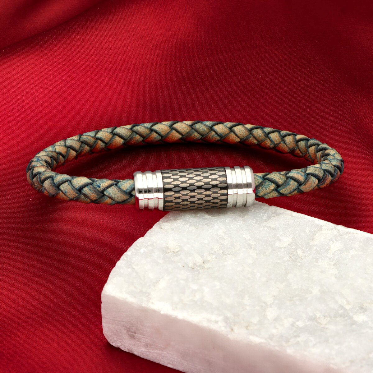 Męska bransoleta wykonana z naturalnej skóry oraz stali szlachetnej 316L, odpornej na uszkodzenia i hipoalergicznej. Prosty, nowoczesny design sprawia, że pasuje zarówno na co dzień, jak i do bardziej eleganckich stylizacji.