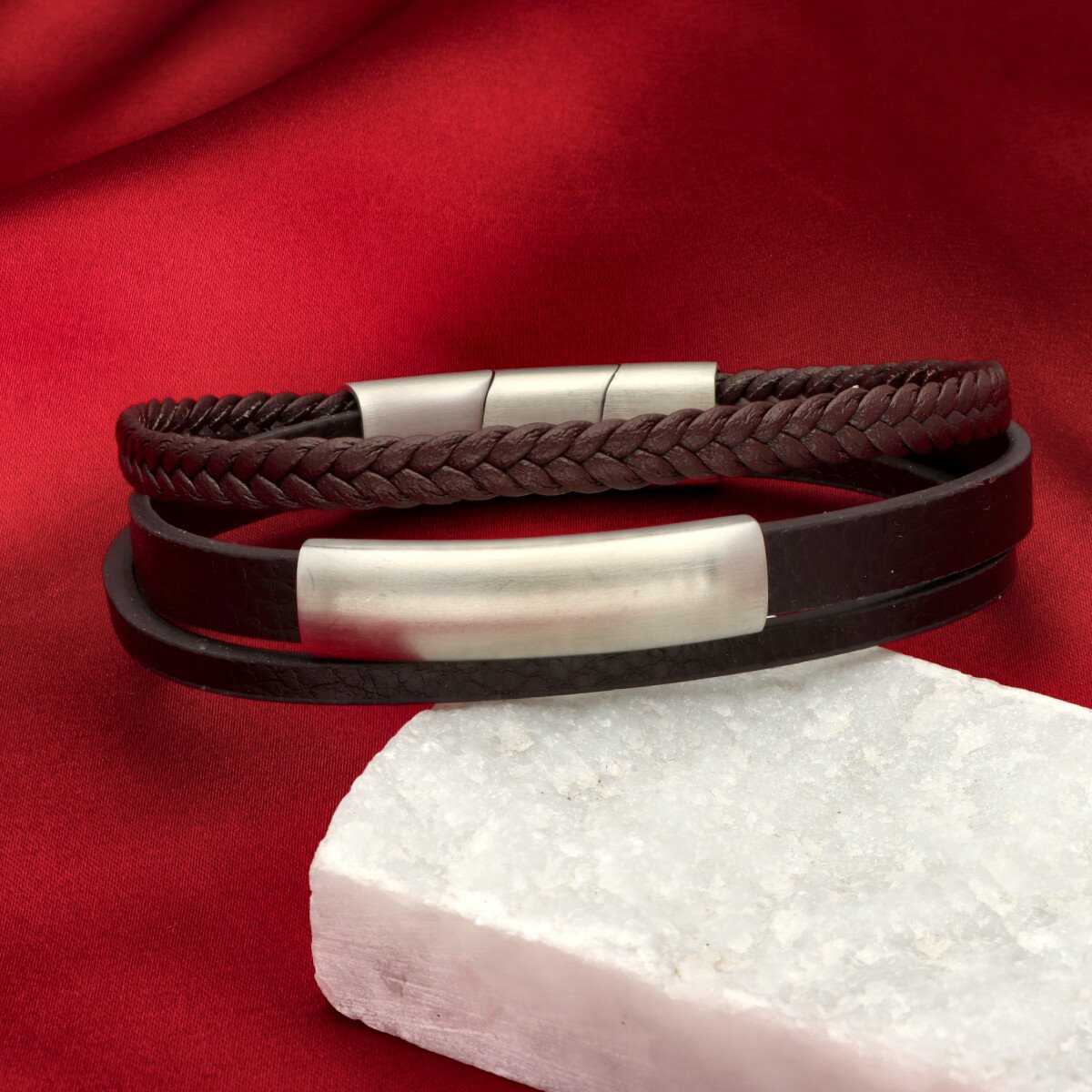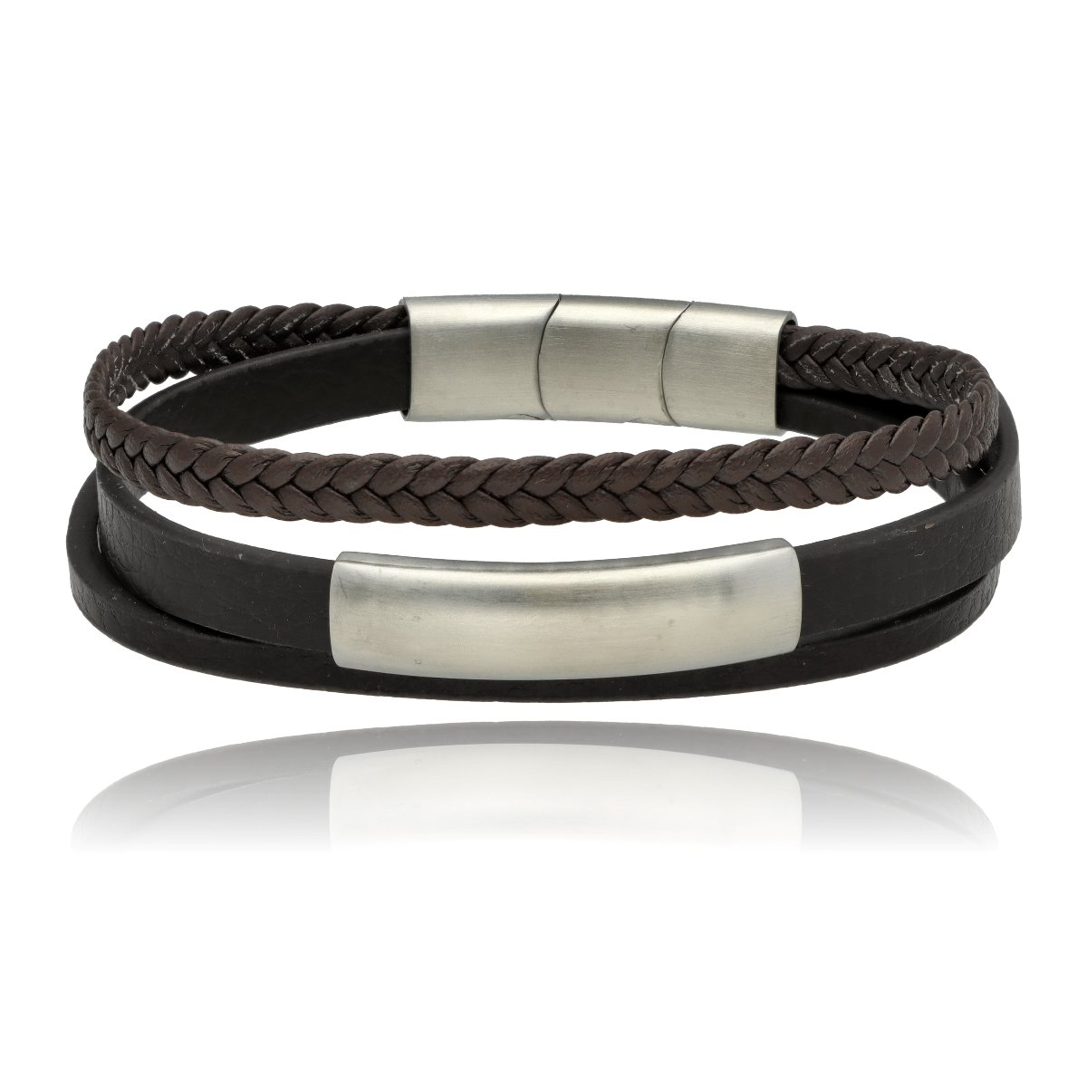 Męska bransoleta wykonana z naturalnej skóry oraz stali szlachetnej 316L, odpornej na uszkodzenia i hipoalergicznej. Prosty, nowoczesny design sprawia, że pasuje zarówno na co dzień, jak i do bardziej eleganckich stylizacji.