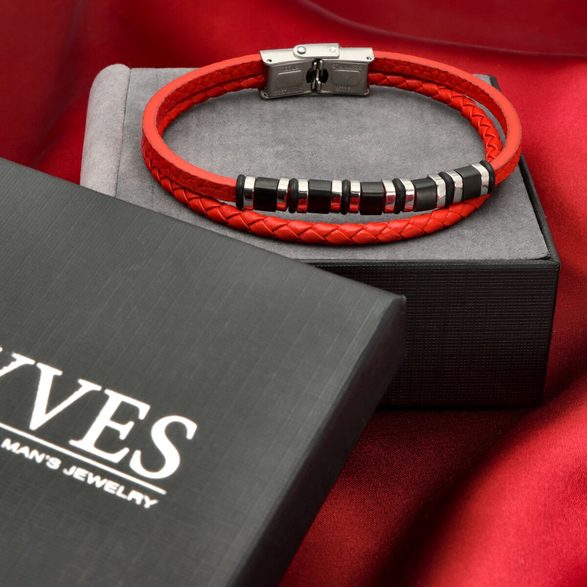 Męska bransoleta wykonana z naturalnej skóry oraz stali szlachetnej 316L, odpornej na uszkodzenia i hipoalergicznej. Prosty, nowoczesny design sprawia, że pasuje zarówno na co dzień, jak i do bardziej eleganckich stylizacji.