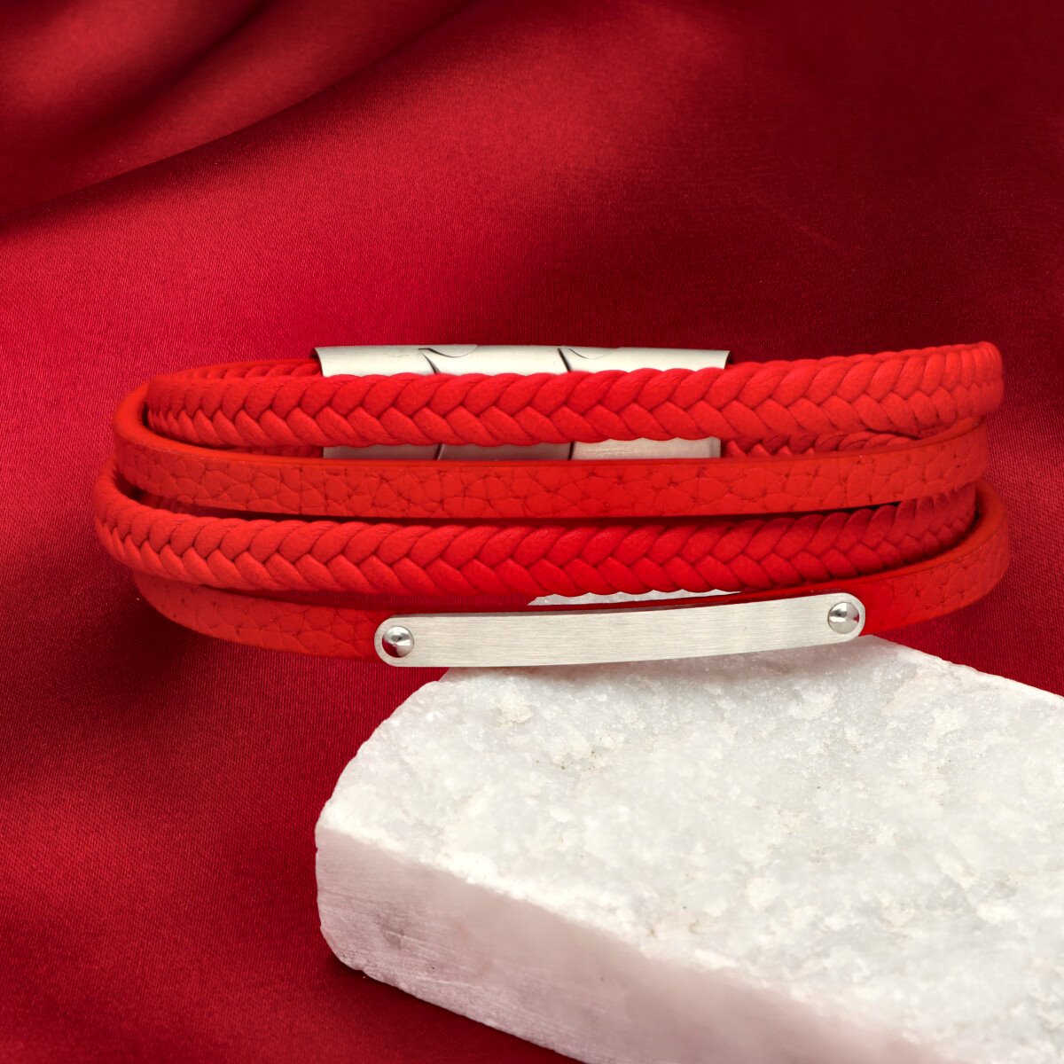 Męska bransoleta wykonana z naturalnej skóry oraz stali szlachetnej 316L, odpornej na uszkodzenia i hipoalergicznej. Prosty, nowoczesny design sprawia, że pasuje zarówno na co dzień, jak i do bardziej eleganckich stylizacji.