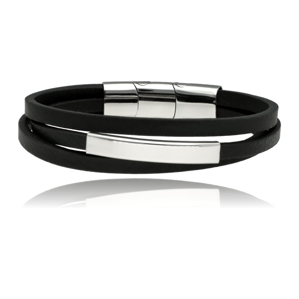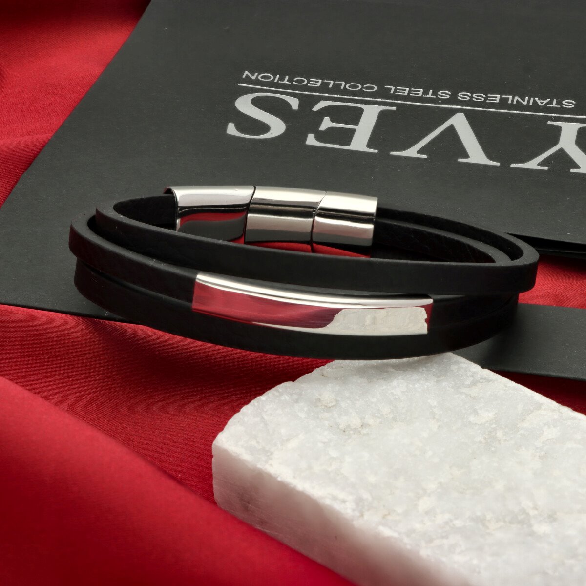 Męska bransoleta wykonana z naturalnej skóry oraz stali szlachetnej 316L, odpornej na uszkodzenia i hipoalergicznej. Prosty, nowoczesny design sprawia, że pasuje zarówno na co dzień, jak i do bardziej eleganckich stylizacji.