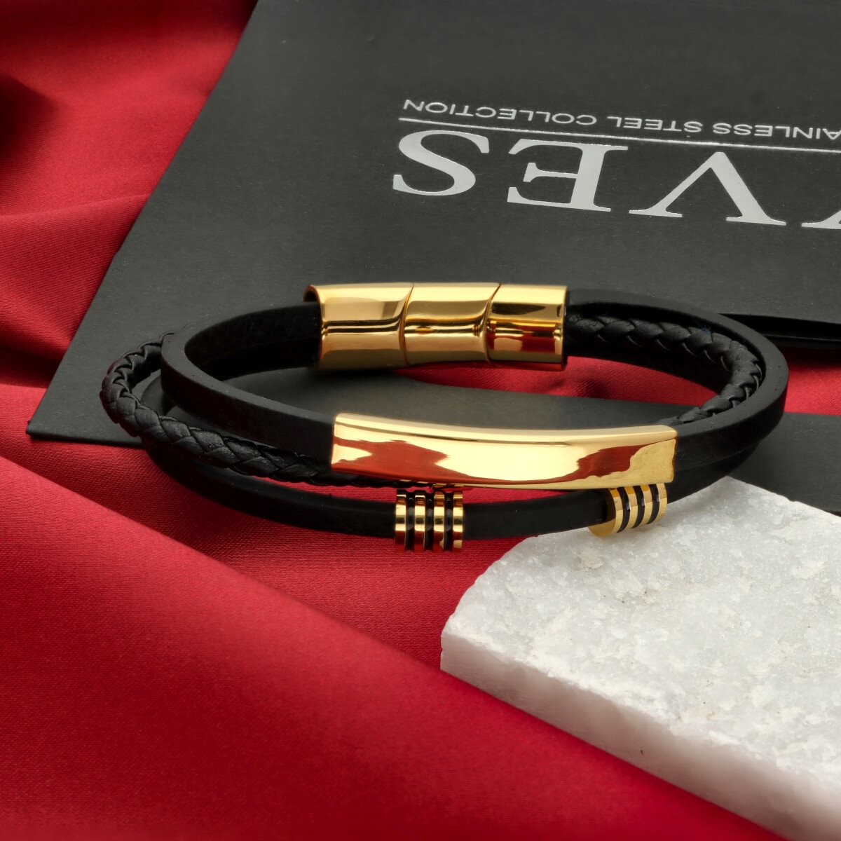 Męska bransoleta wykonana z naturalnej skóry oraz stali szlachetnej 316L, odpornej na uszkodzenia i hipoalergicznej. Prosty, nowoczesny design sprawia, że pasuje zarówno na co dzień, jak i do bardziej eleganckich stylizacji.