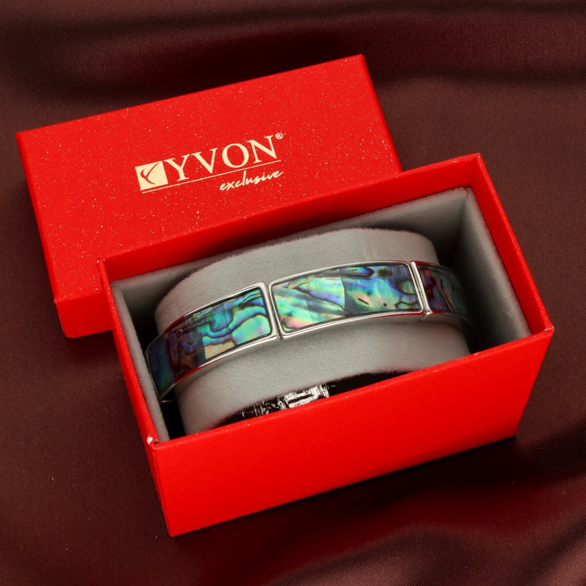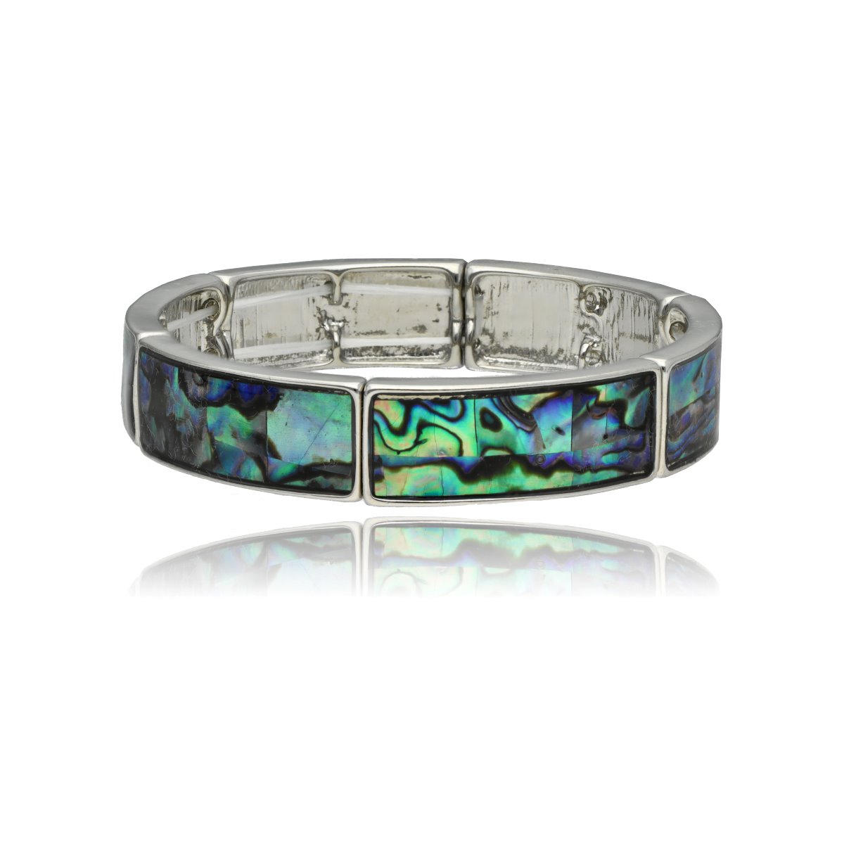 Stylowa bransoletka na elastycznej gumce, wykonana z metalowych, antyalergicznych elementów i muszli naturalnej Abalone.