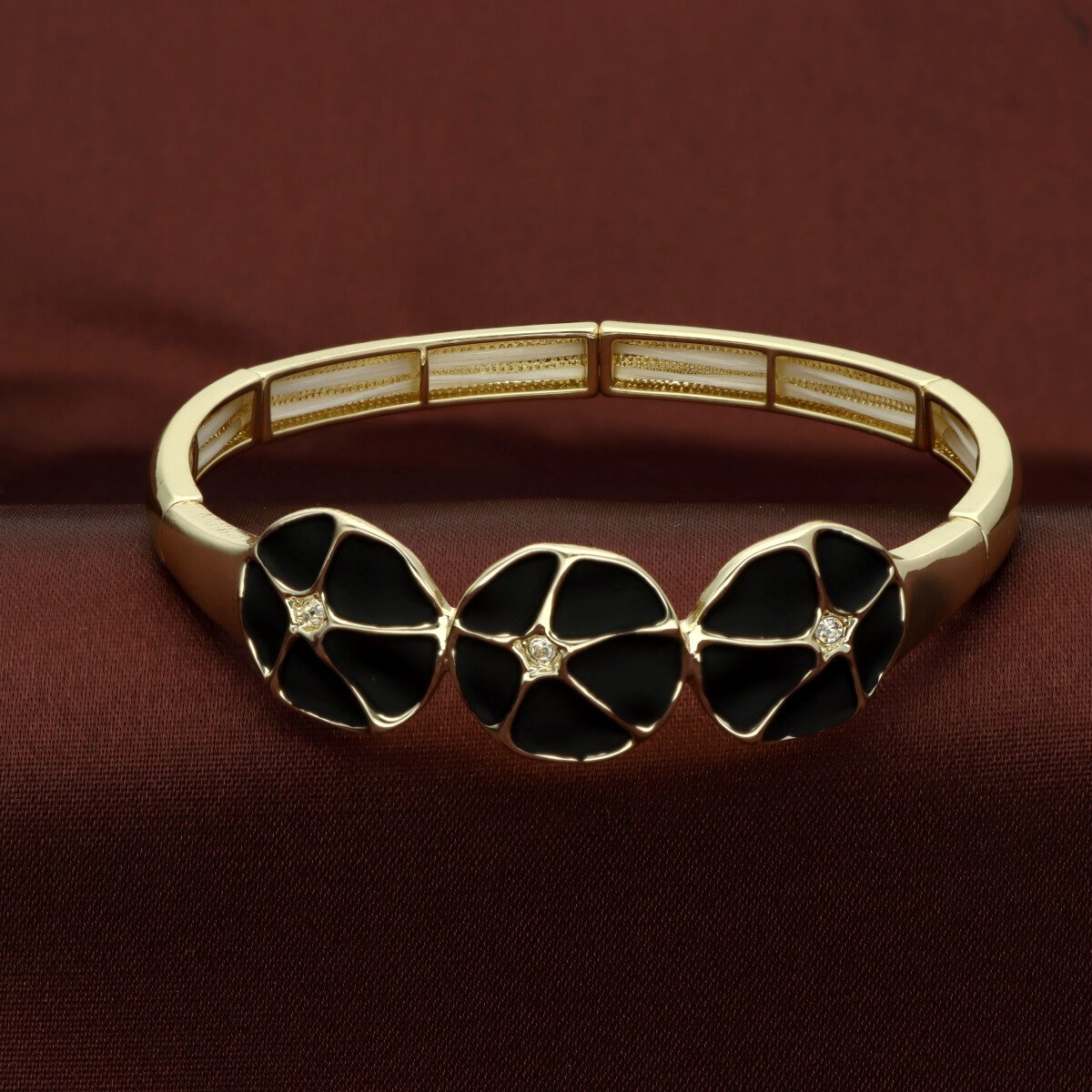 Elegancka bransoletka wykonana z metalu antyalergicznego i emalii. Rozmiar uniwersalny (na rozciągliwych gumkach). Szukaj do kompletu naszyjnika i kolczyków o tym samym indeksie numerycznym.