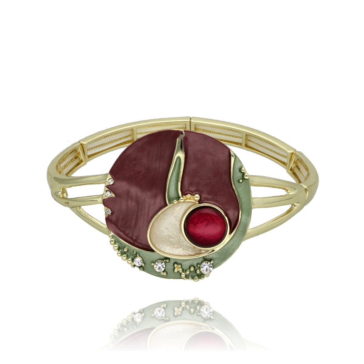 Elegancka bransoletka wykonana z metalu, żywicy jubilerskiej i emalii. Rozmiar uniwersalny (na rozciągliwych gumkach). Szukaj do kompletu naszyjnika i kolczyków o tym samym indeksie numerycznym.