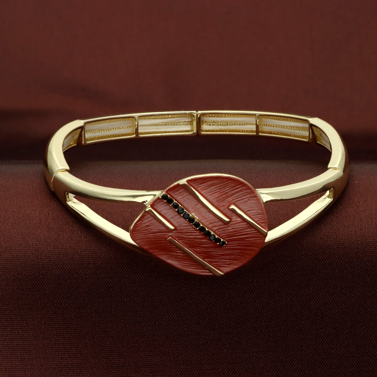 Elegancka bransoletka wykonana z metalu antyalergicznego i emalii. Rozmiar uniwersalny (na rozciągliwych gumkach). Szukaj do kompletu naszyjnika i kolczyków o tym samym indeksie numerycznym.