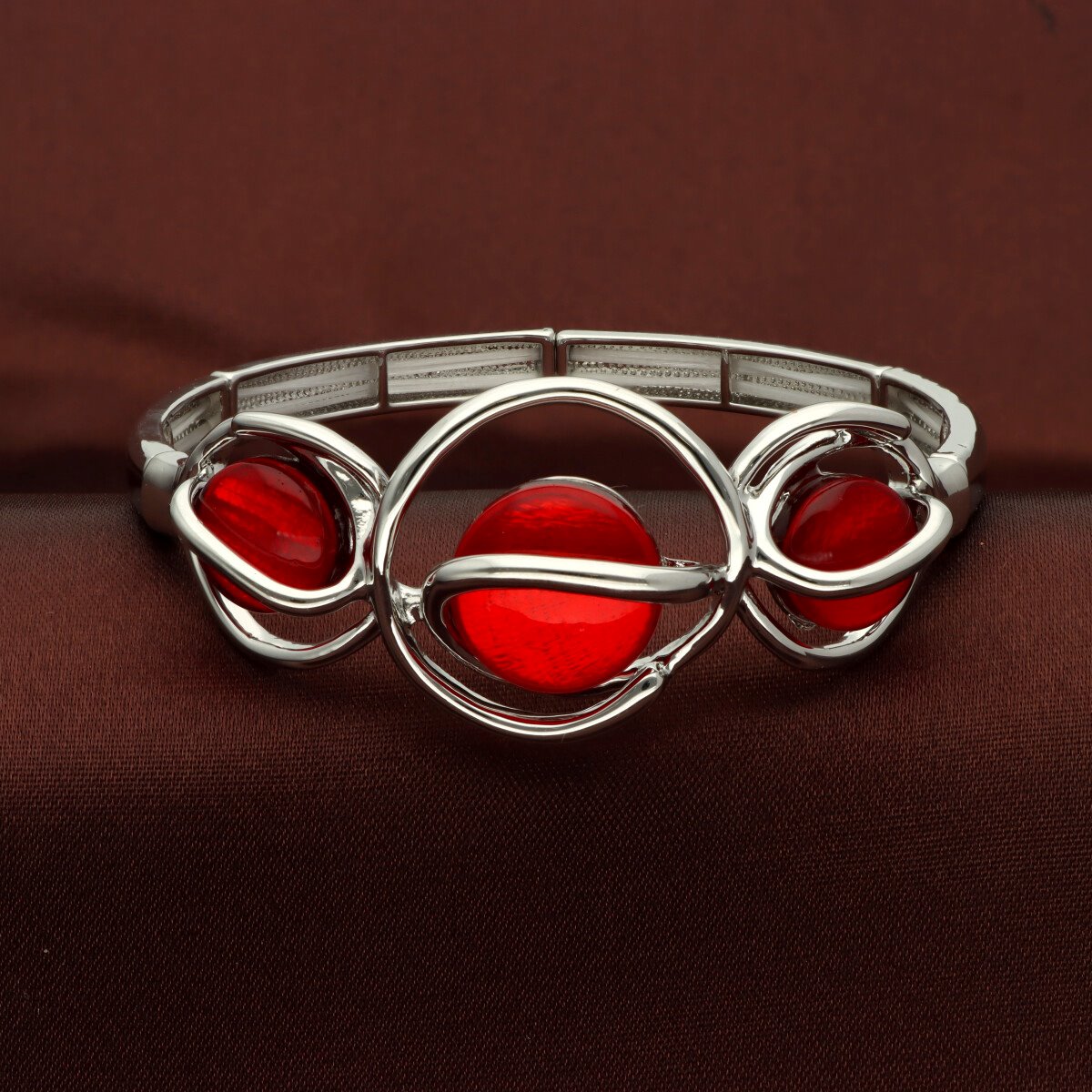 Elegancka bransoletka wykonana z metalu antyalergicznego i żywicy. Rozmiar uniwersalny (na rozciągliwych gumkach). Szukaj do kompletu naszyjnika i kolczyków o tym samym indeksie numerycznym.