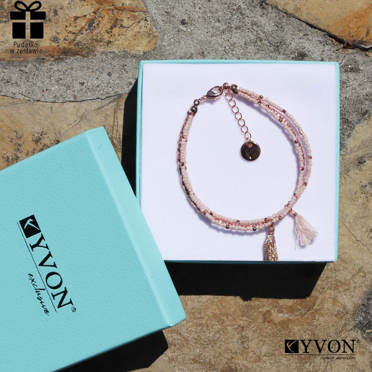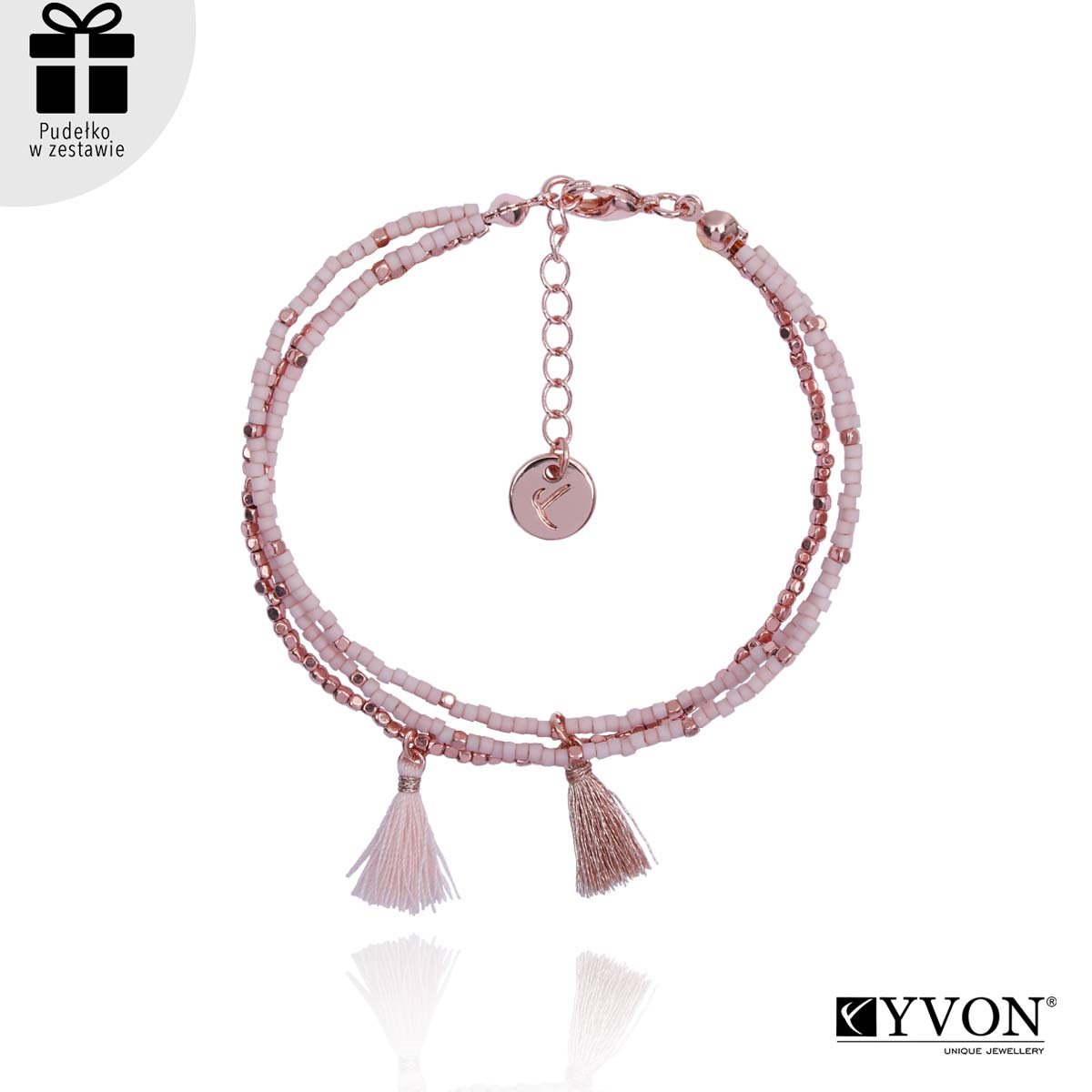 Bransoletka wykonana z pozłacanej miedzi i koralików MIYUKI. Długość: 17.5cm+3cm regulacja. Produkt w 100% antyalergiczna. W ekskluzywnym pudełku.