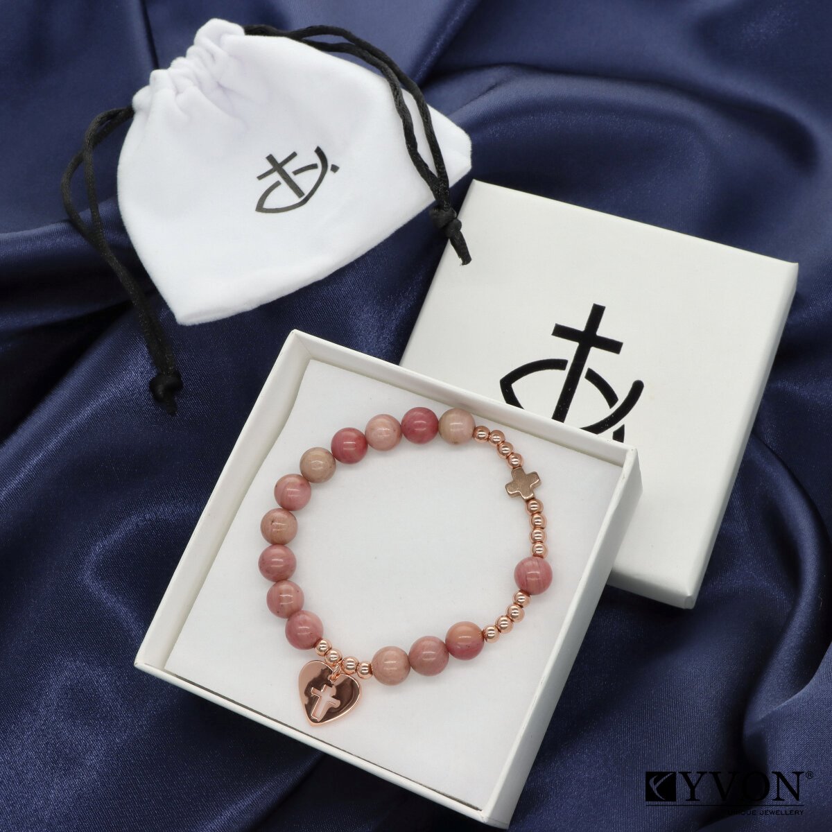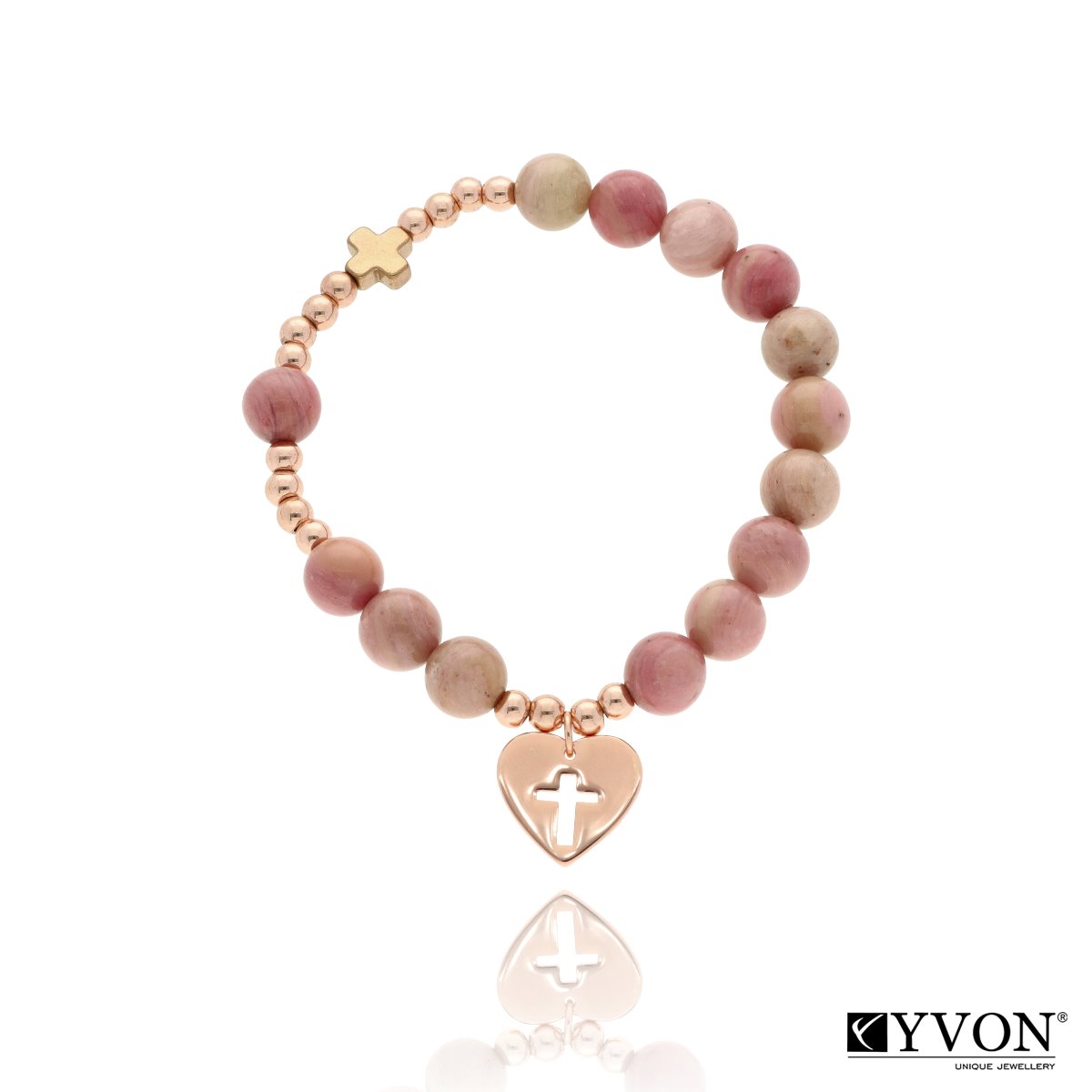Stal szlachetna pozłacana i kamienie naturalne (rodochrozyt).