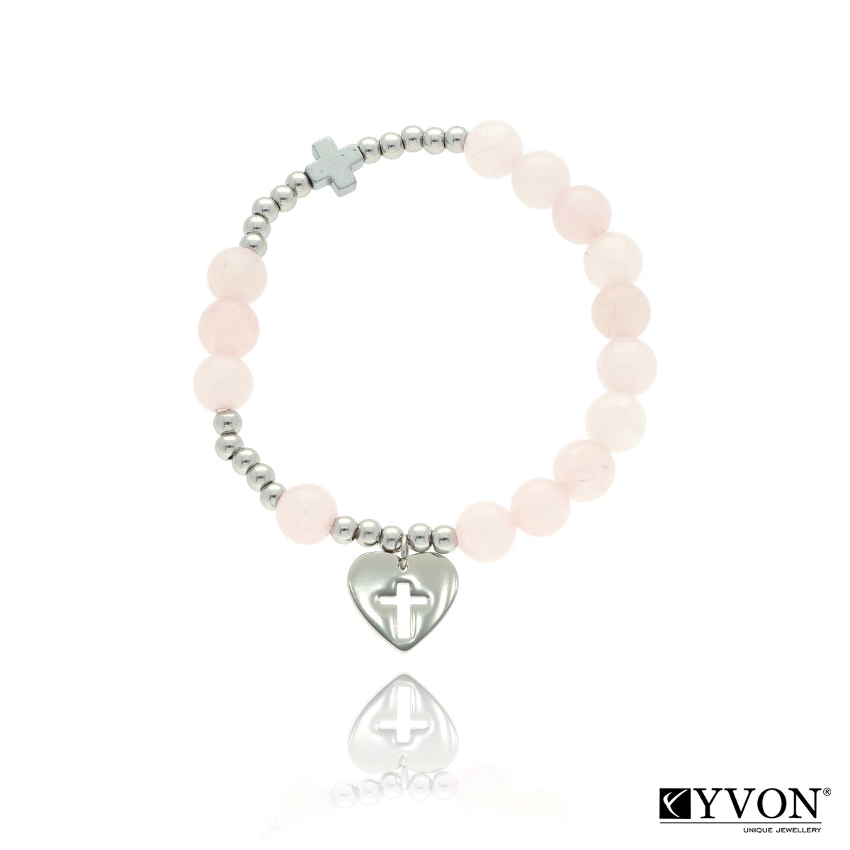 Stal szlachetna i kamienie naturalne (kwarc różowy).