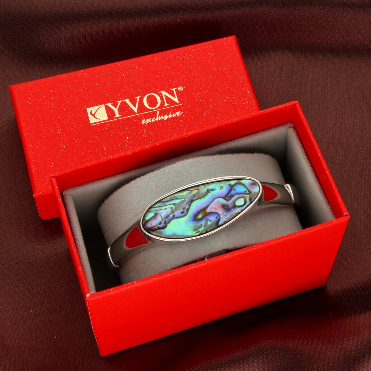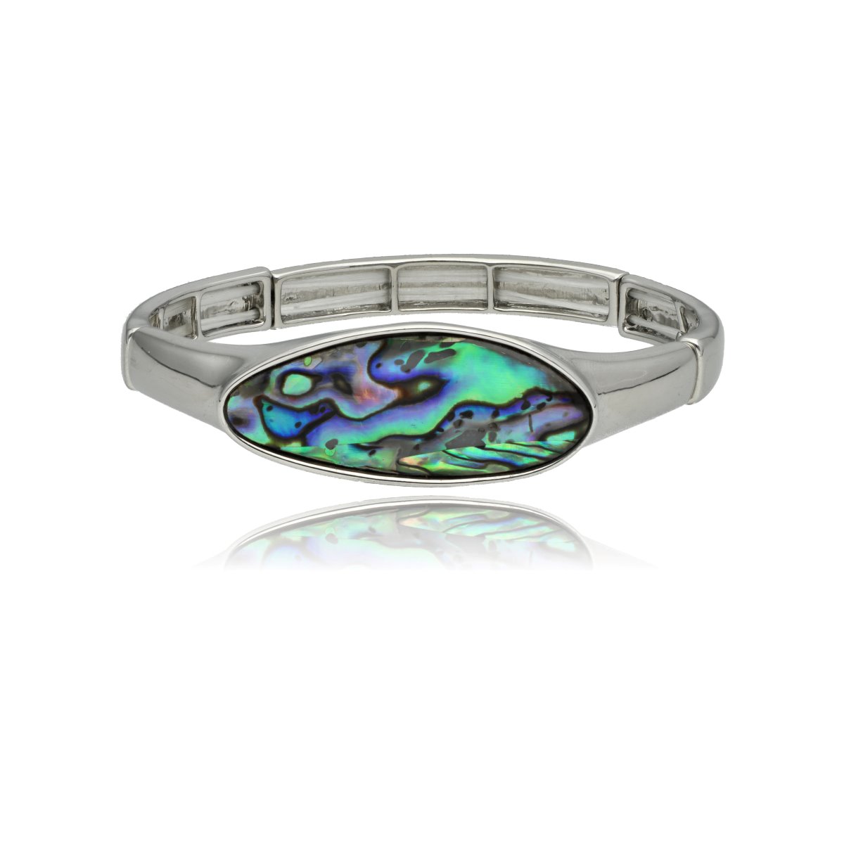 Stylowa bransoletka na elastycznej gumce, wykonana z metalowych, antyalergicznych elementów i muszli naturalnej Abalone.