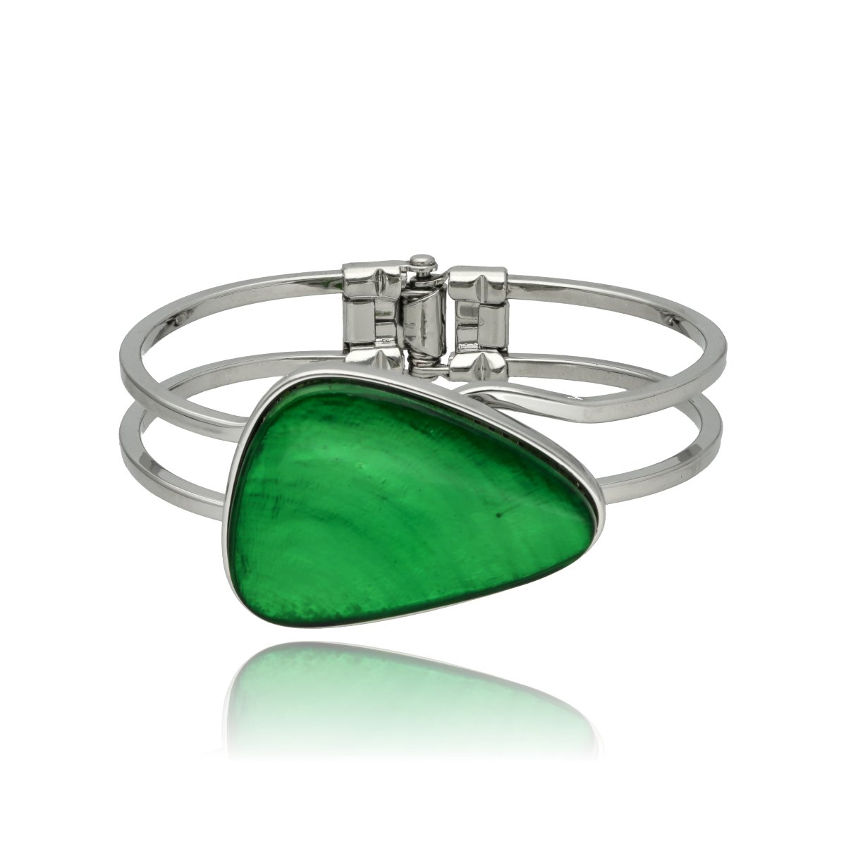 Elegancka bransoletka wykonana z metalu antyalergicznego i żywicy. Rozmiar uniwersalny (rozchylana). Szukaj do kompletu naszyjnika i kolczyków o tym samym indeksie numerycznym.