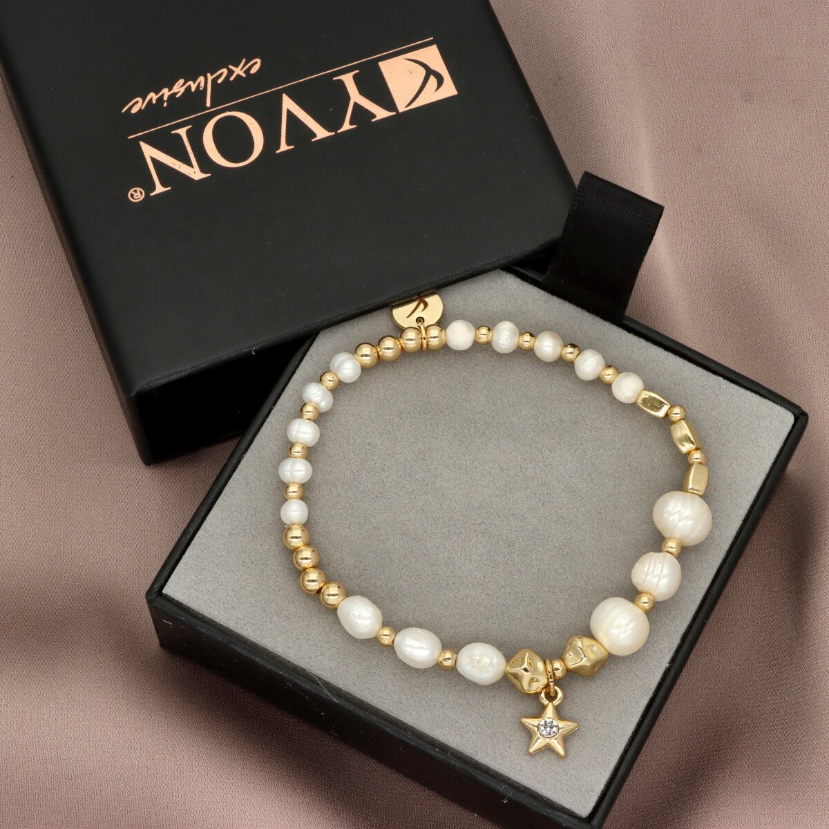 Bransoletka wykonana z NATURALNYCH PEREŁ SŁODKOWODNYCH. Każda perła ma unikalny kształt i delikatny połysk, charakterystyczny dla pereł naturalnych.