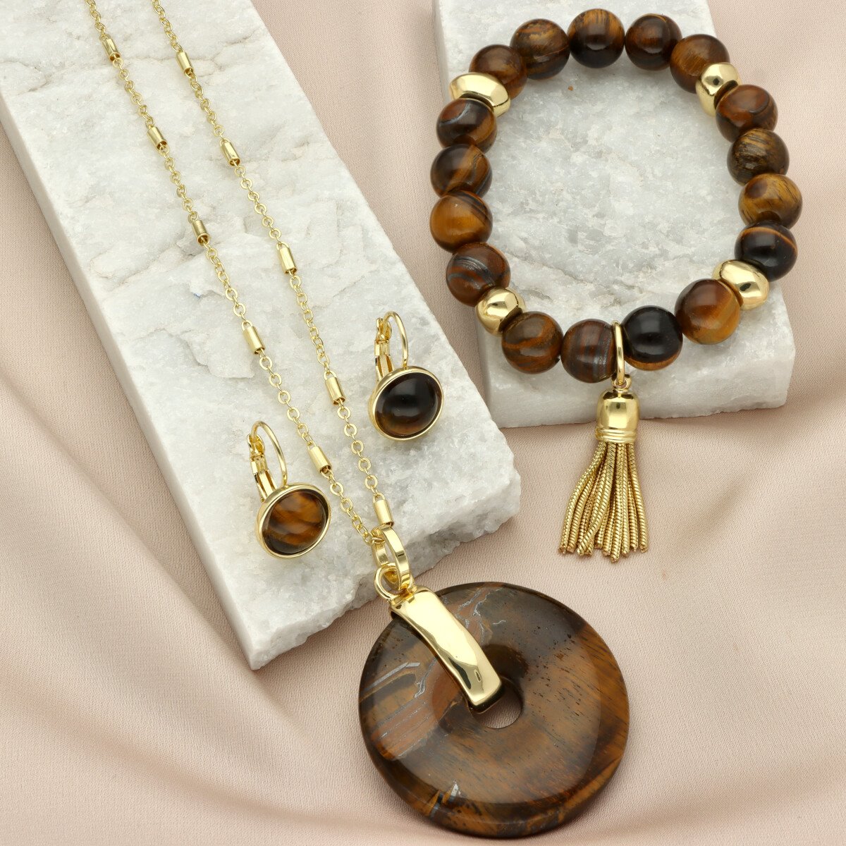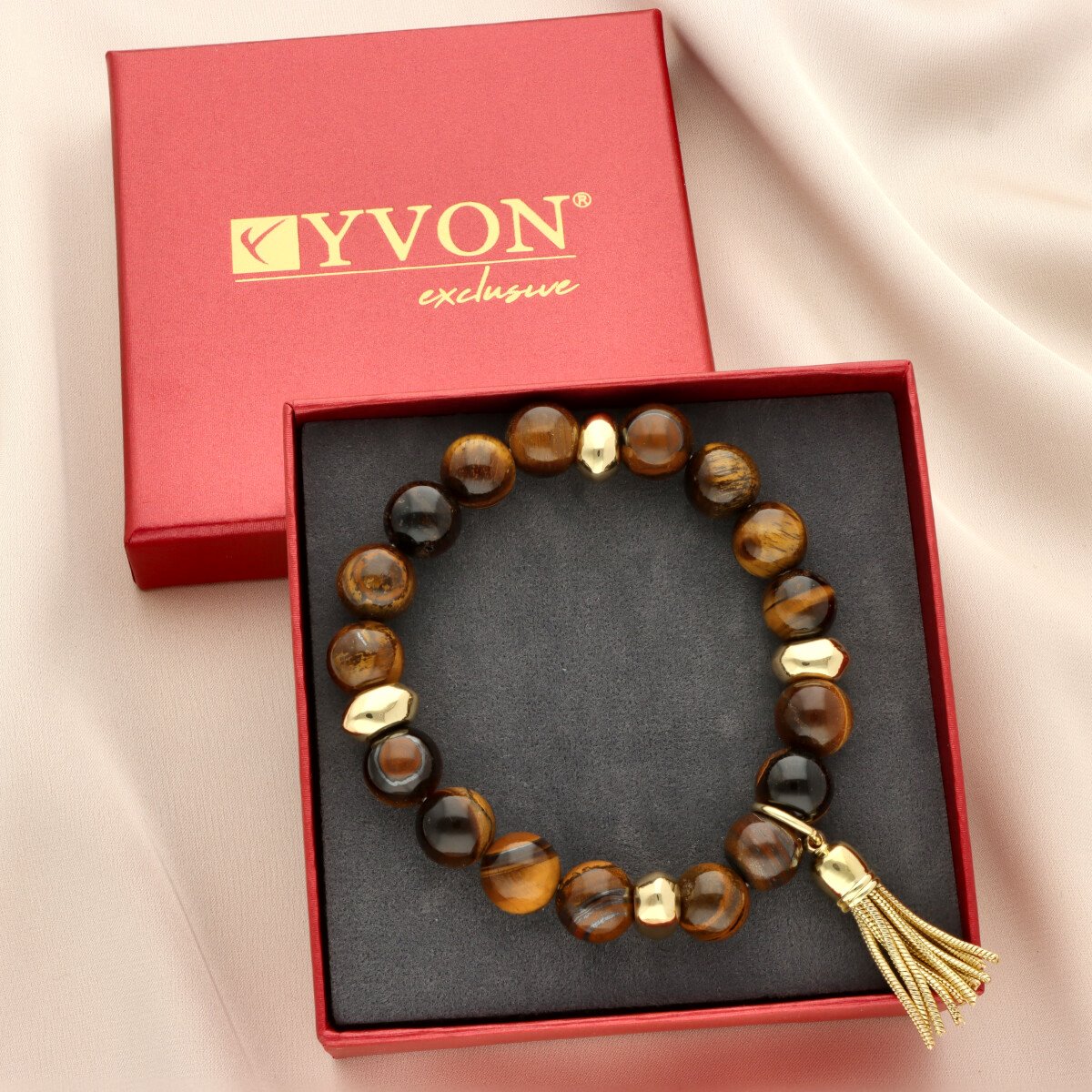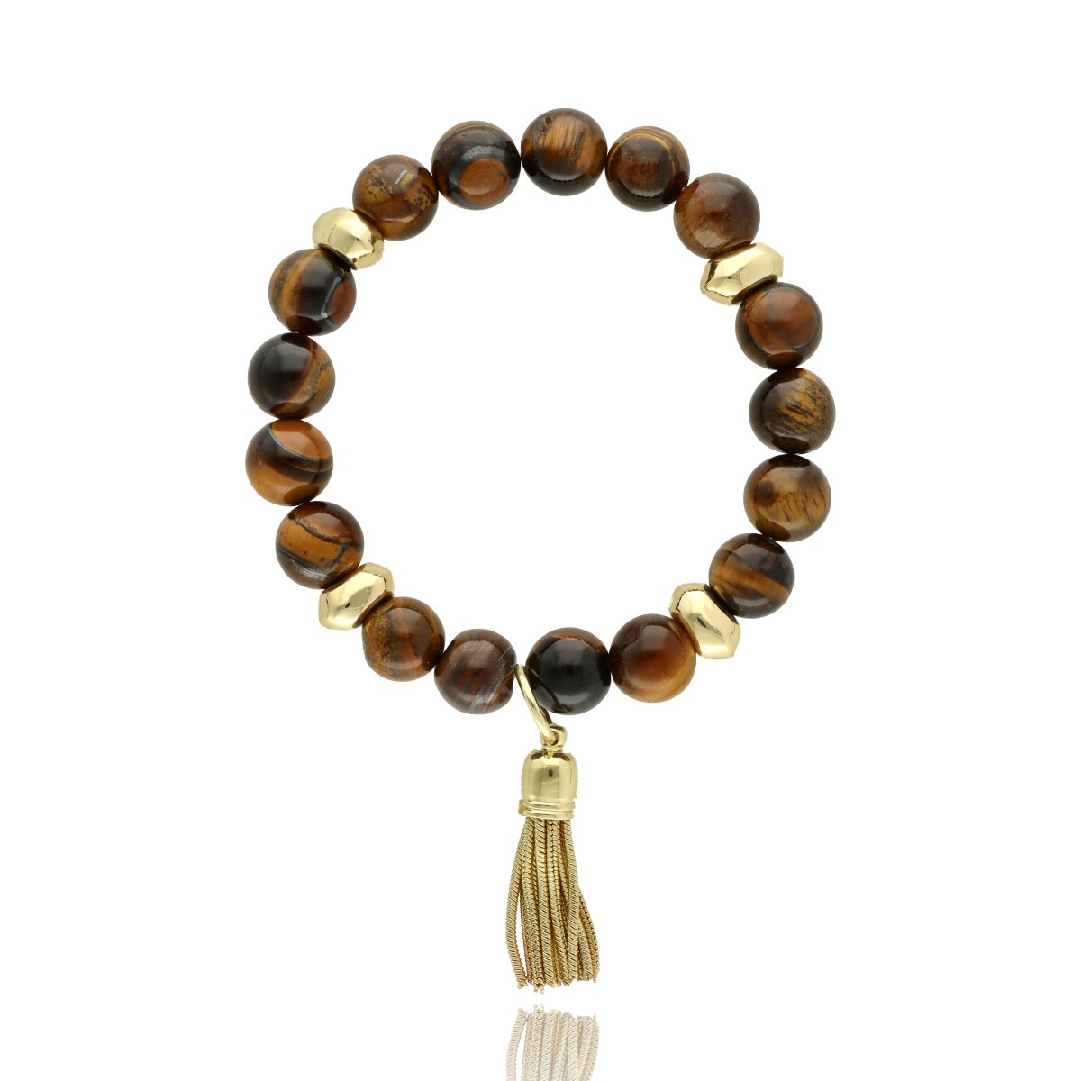 Stylowa bransoletka z naturalnym kamieniem tygrysie oko (Tiger Eye) to eleganckie uzupełnienie zestawu. Gładko szlifowane kule o ciepłym, złoto-brązowym odcieniu z charakterystycznym efektem refleksów tworzą ponadczasową kompozycję.