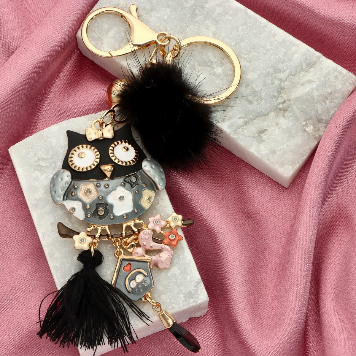 Ten kolorowy brelok w kształcie uroczej sowy to energetyczny i praktyczny dodatek, który ozdobi Twoje klucze, torebkę czy szlufkę od spodni. Wykonany z barwnej emalii i żywicy, zachwyca lekkością i radosnym designem. Najlepiej prezentuje się w komplecie z dopasowaną broszką na magnes, która – dzięki magnetycznemu zapięciu – nie niszczy ubrań i może być przypięta praktycznie wszędzie. Razem tworzą efektowny duet idealny na prezent lub jako detal w stylizacji! Wielkość zawieszki: ok. 6 cm. Długość całkowita: 14 cm.