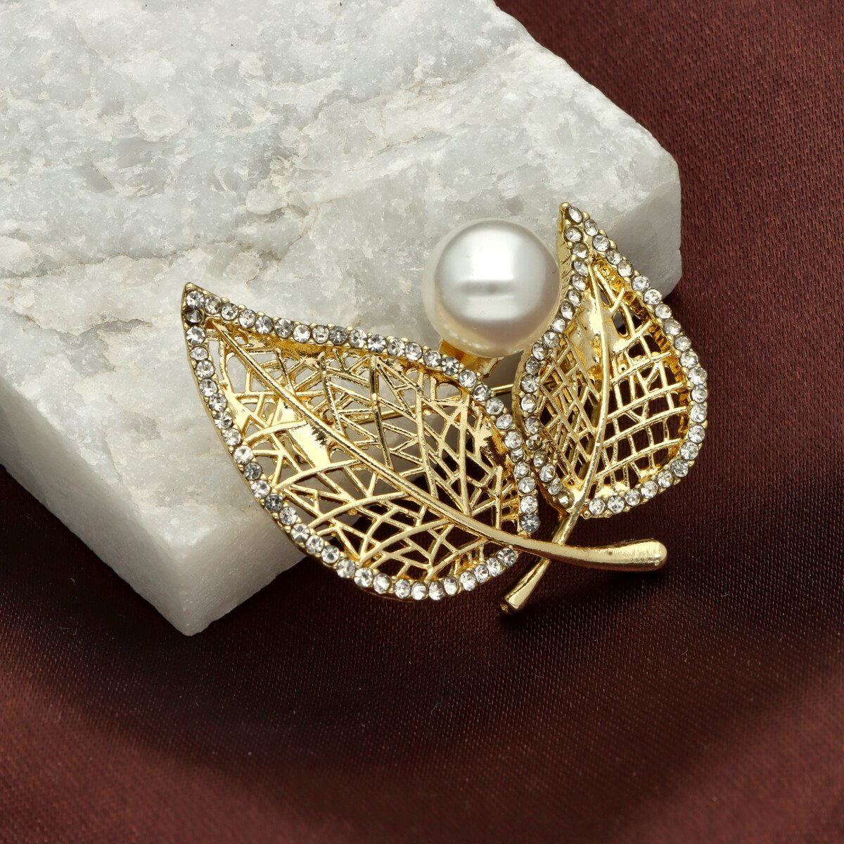 Elegancka broszka wykonana z metalu hypoalergicznego, cyrkonii i perły shell. Subtelny dodatek, który idealnie wpisuje się w jesienne stylizacje.