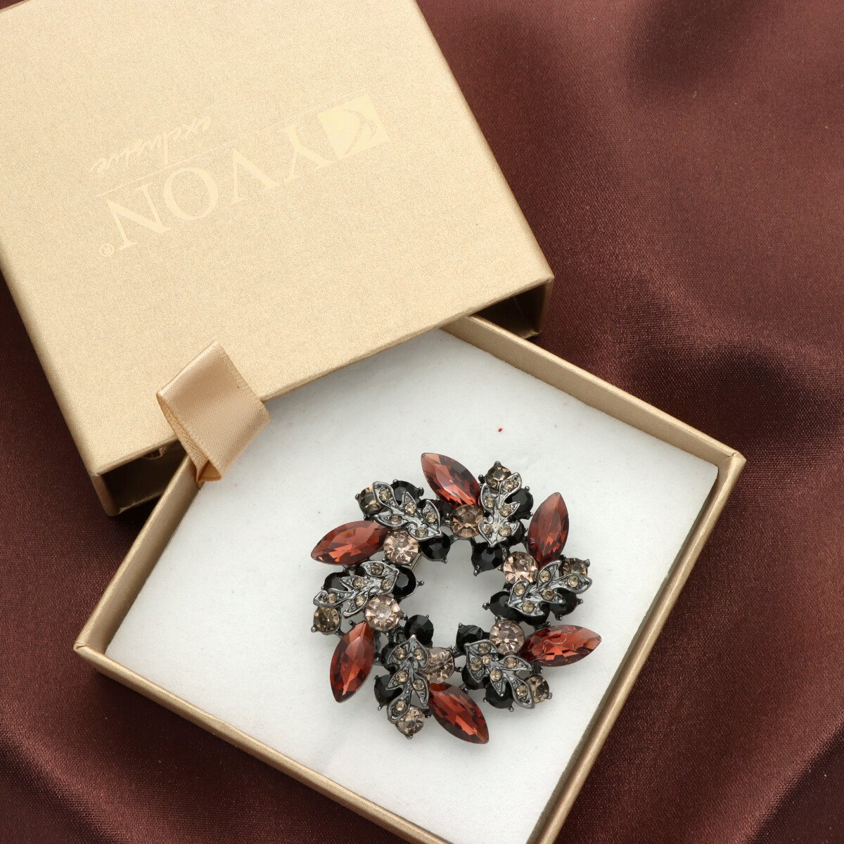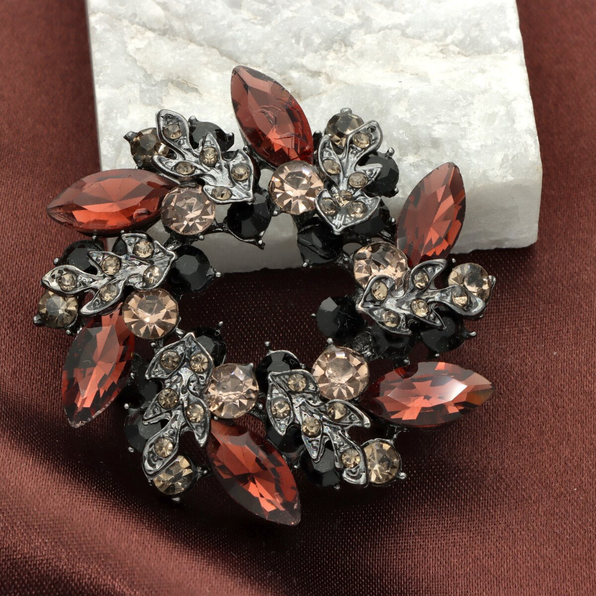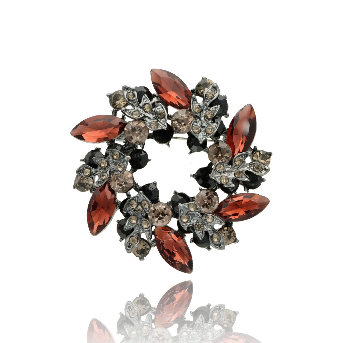Elegancka broszka wykonana z wysokiej jakości szkła fasetowanego oraz metalu hypoalergicznego. Subtelny dodatek, który idealnie wpisuje się w jesienne stylizacje. Każda broszka pakowana jest w prześliczne pudełeczko z wysuwaną szufladką, dzięki czemu świetnie sprawdzi się również jako gotowy prezent – bez potrzeby dodatkowego opakowywania.