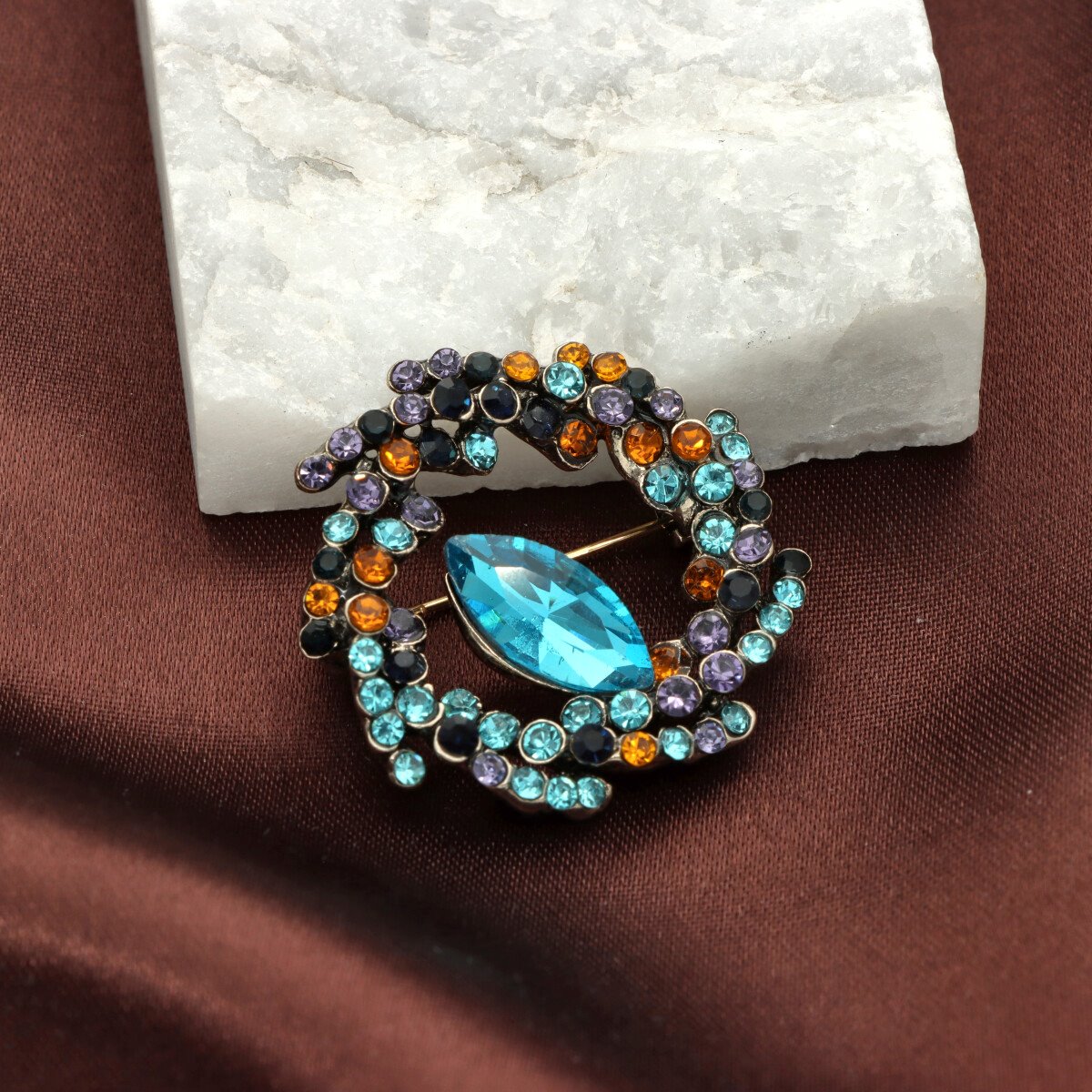 Elegancka broszka wykonana z wysokiej jakości szkła fasetowanego oraz metalu hypoalergicznego. Subtelny dodatek, który idealnie wpisuje się w jesienne stylizacje. Każda broszka pakowana jest w prześliczne pudełeczko z wysuwaną szufladką, dzięki czemu świetnie sprawdzi się również jako gotowy prezent – bez potrzeby dodatkowego opakowywania.