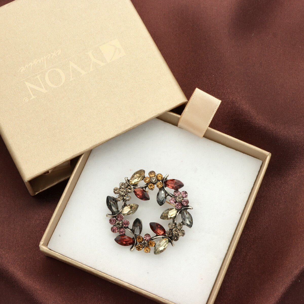 Elegancka broszka wykonana z wysokiej jakości szkła fasetowanego oraz metalu hypoalergicznego. Subtelny dodatek, który idealnie wpisuje się w jesienne stylizacje. Każda broszka pakowana jest w prześliczne pudełeczko z wysuwaną szufladką, dzięki czemu świetnie sprawdzi się również jako gotowy prezent – bez potrzeby dodatkowego opakowywania.