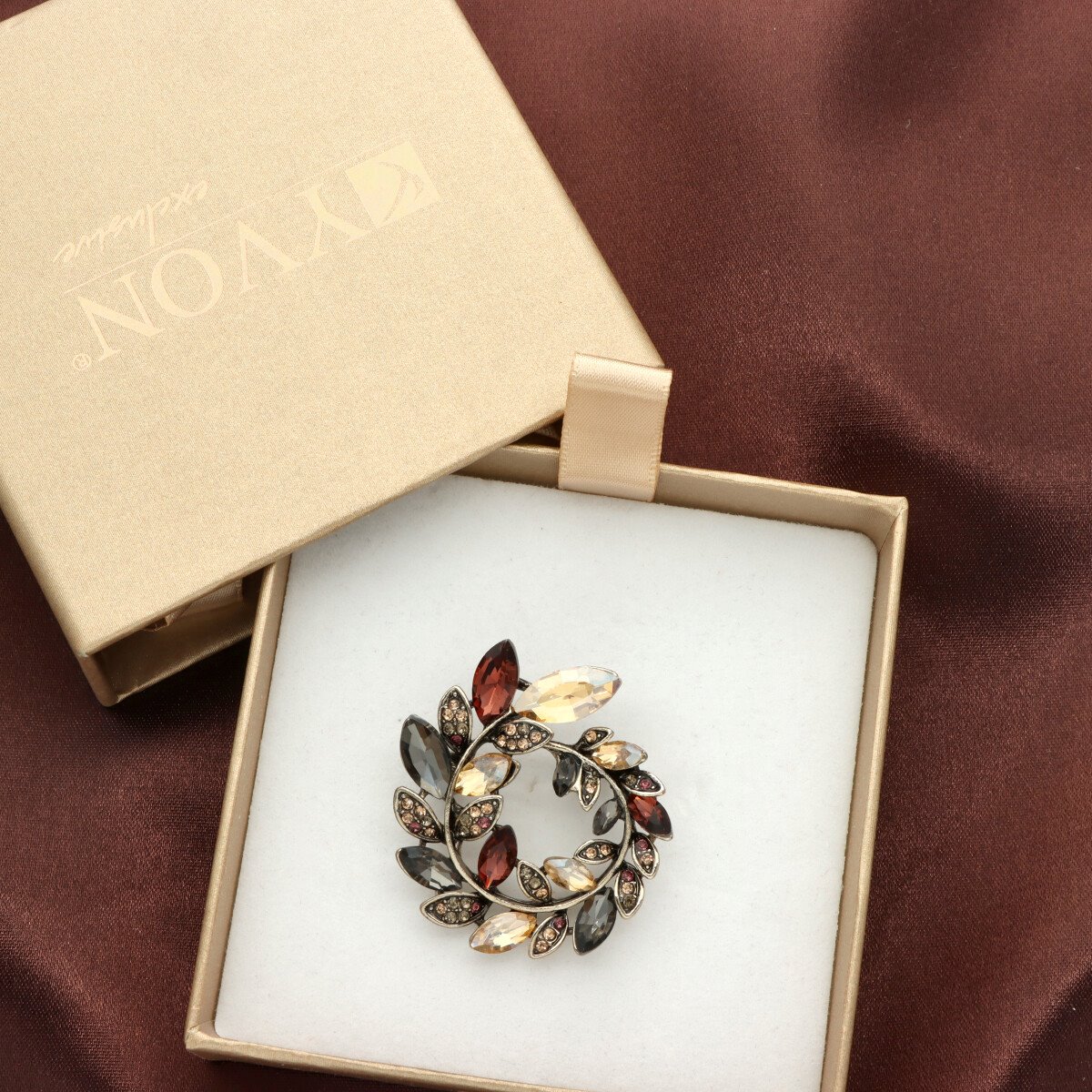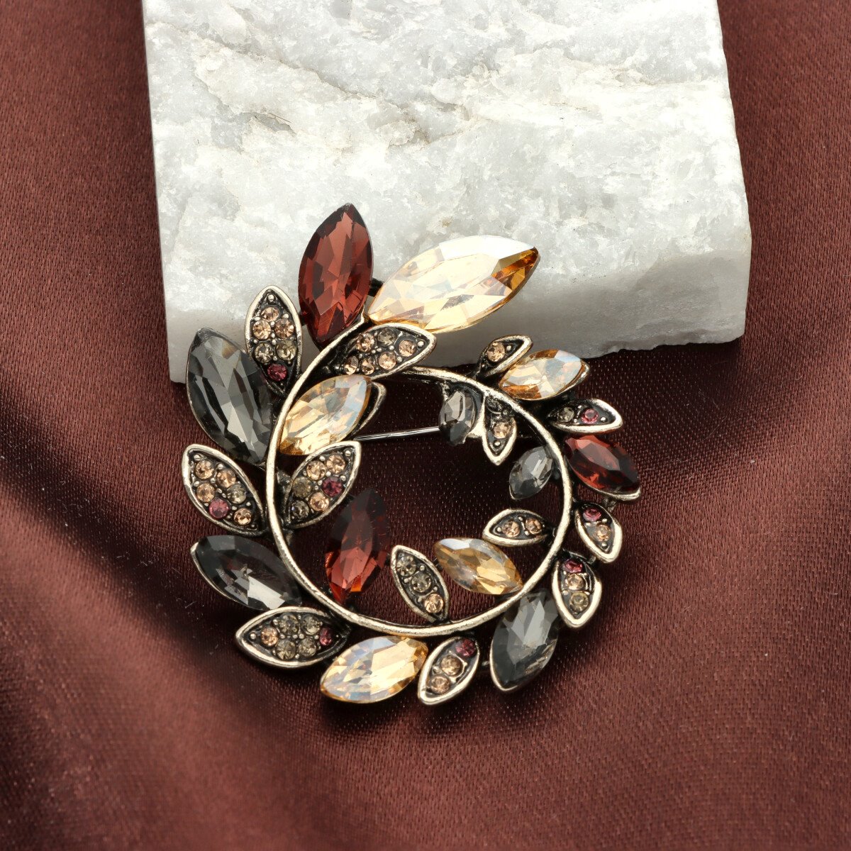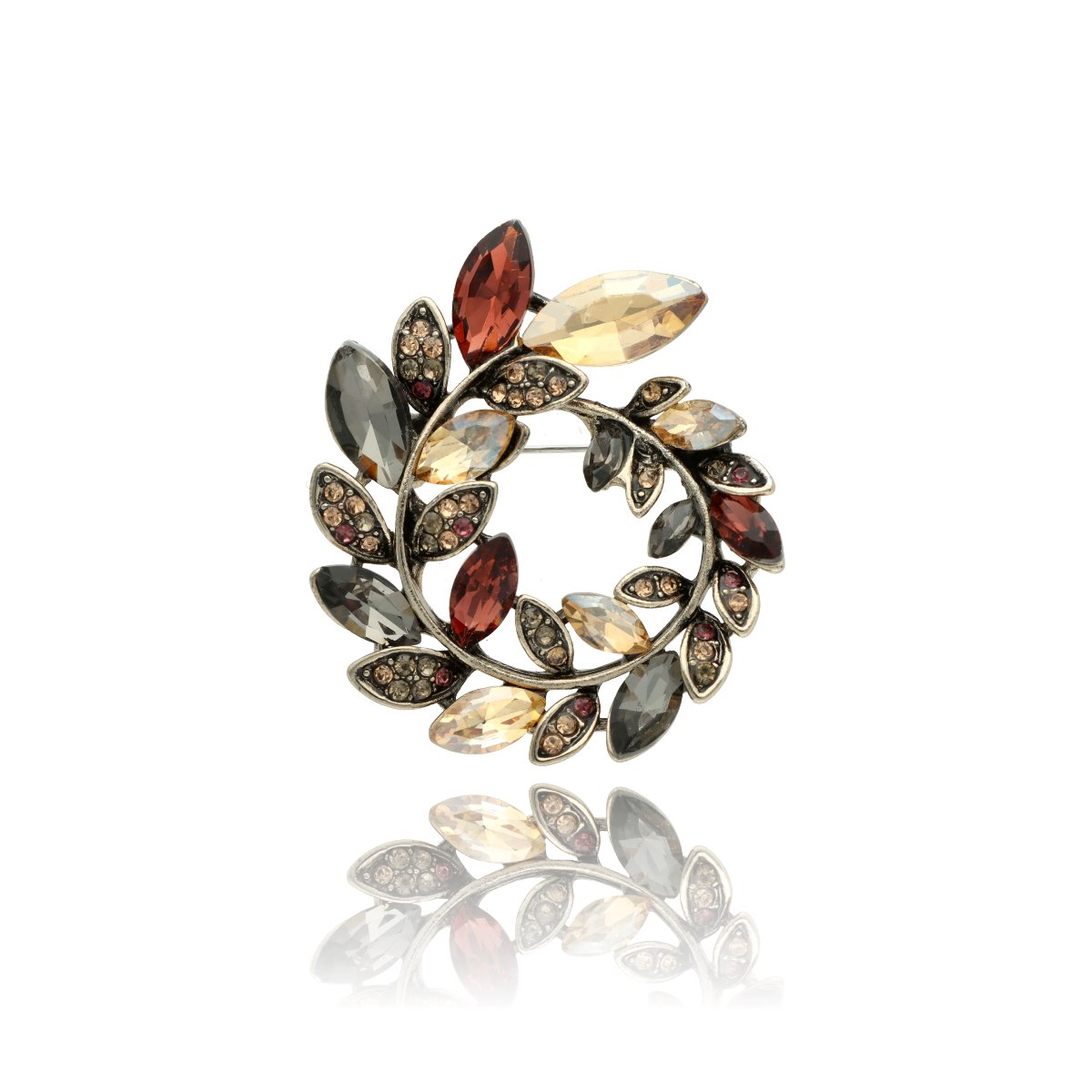 Elegancka broszka wykonana z wysokiej jakości szkła fasetowanego oraz metalu hypoalergicznego. Subtelny dodatek, który idealnie wpisuje się w jesienne stylizacje.