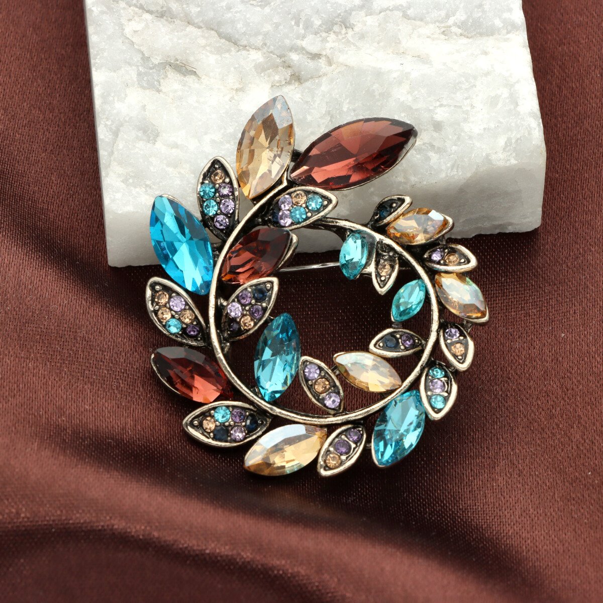 Elegancka broszka wykonana z wysokiej jakości szkła fasetowanego oraz metalu hypoalergicznego. Subtelny dodatek, który idealnie wpisuje się w jesienne stylizacje. Każda broszka pakowana jest w prześliczne pudełeczko z wysuwaną szufladką, dzięki czemu świetnie sprawdzi się również jako gotowy prezent – bez potrzeby dodatkowego opakowywania.