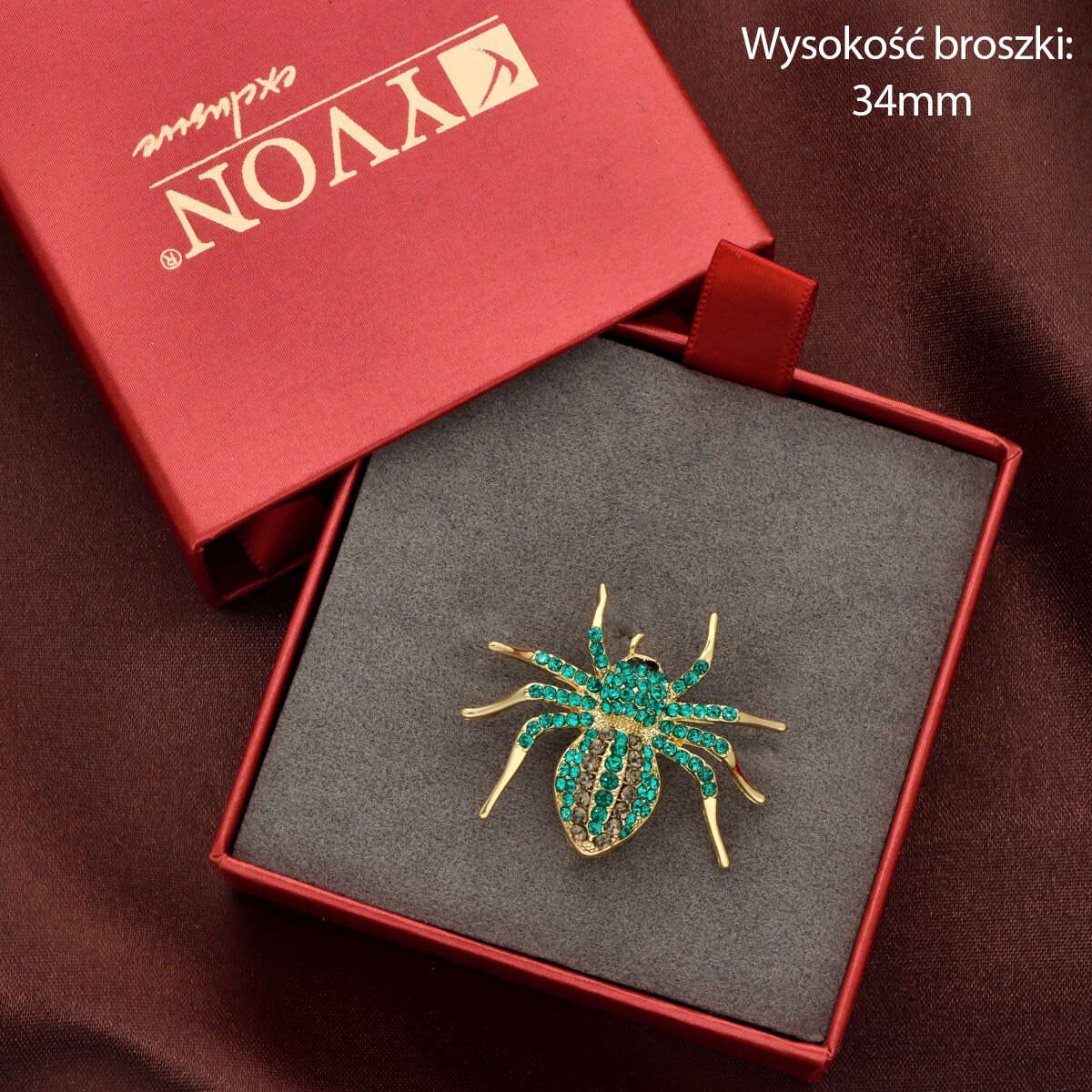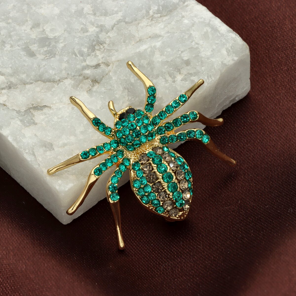 Elegancka broszka wykonana z wysokiej jakości szkła fasetowanego oraz metalu hypoalergicznego. Subtelny dodatek, który idealnie wpisuje się w jesienne stylizacje.