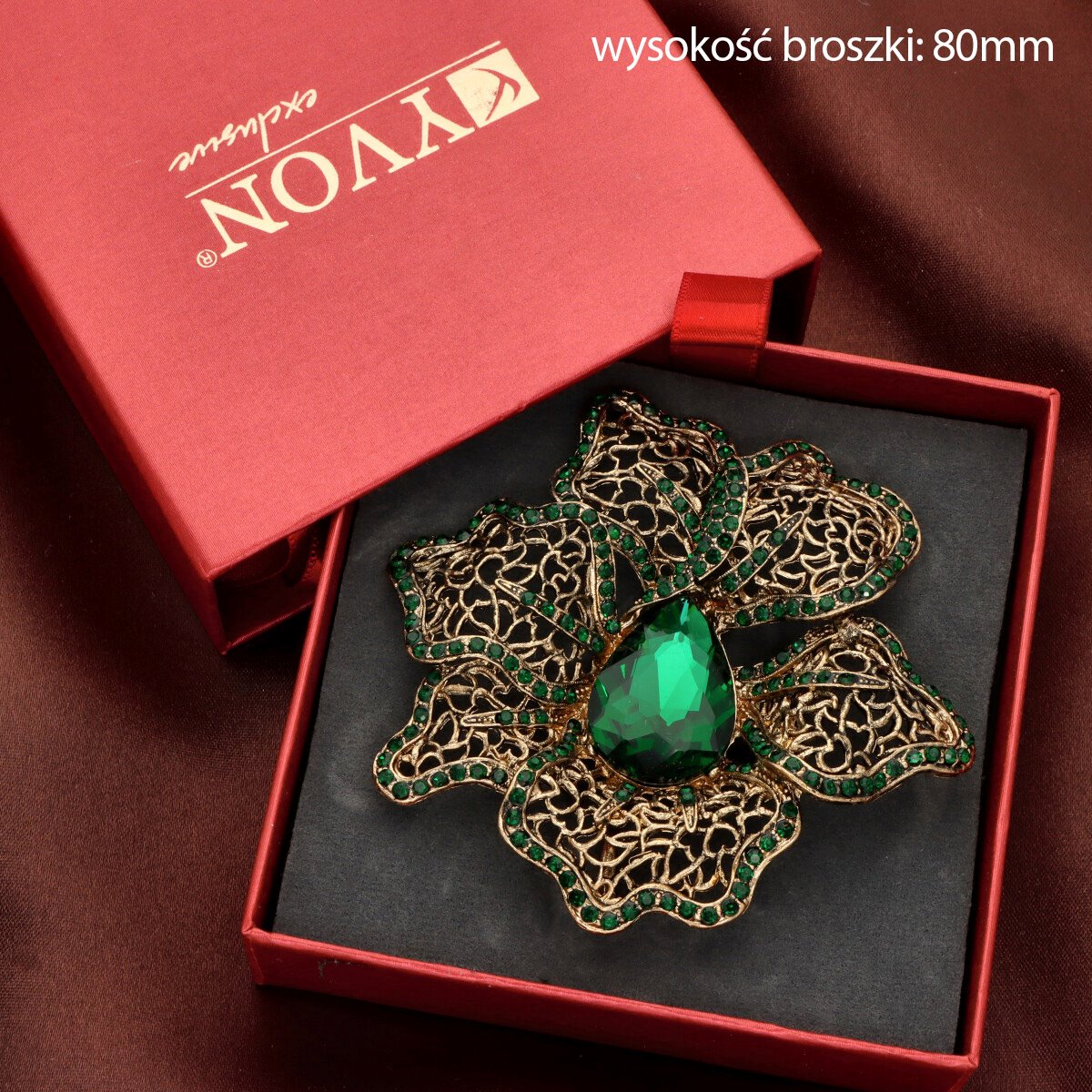 Elegancka broszka wykonana z wysokiej jakości szkła fasetowanego oraz metalu hypoalergicznego. Subtelny dodatek, który idealnie wpisuje się w jesienne stylizacje. Każda broszka pakowana jest w prześliczne pudełeczko z wysuwaną szufladką, dzięki czemu świetnie sprawdzi się również jako gotowy prezent.